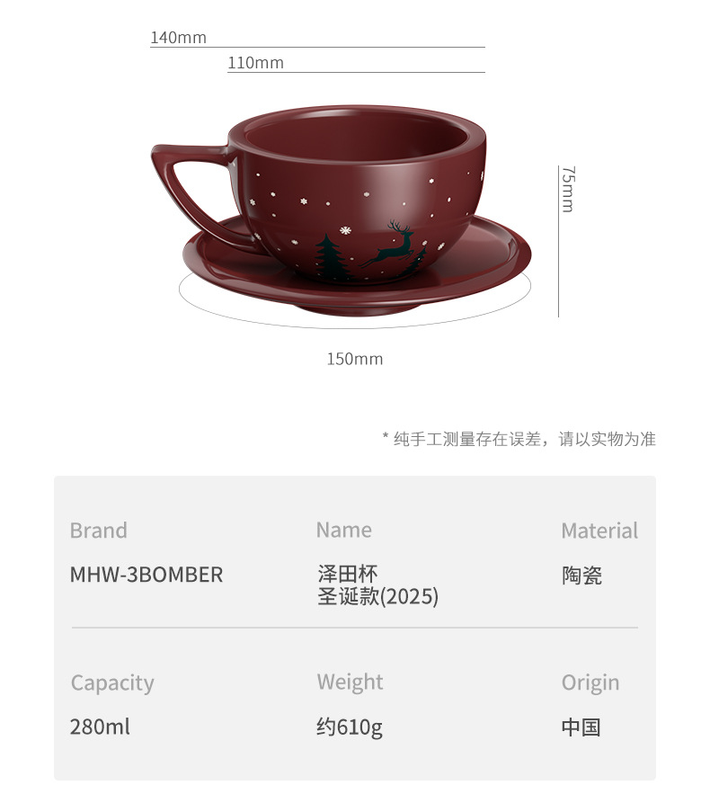 MHW-3BOMBER轰炸机拉花缸圣诞礼物限定版咖啡拉花杯600ml原创手绘