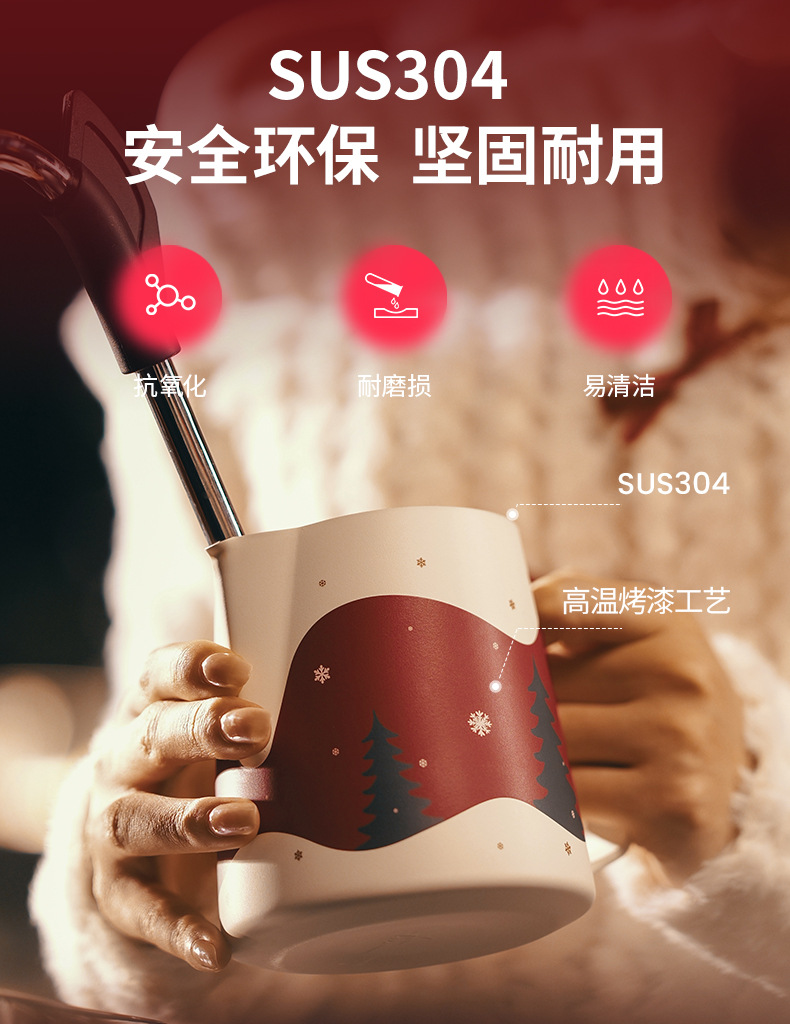 轰炸机MHW拉花缸圣诞限定咖啡杯拉花杯压纹打奶泡杯原创手绘礼物