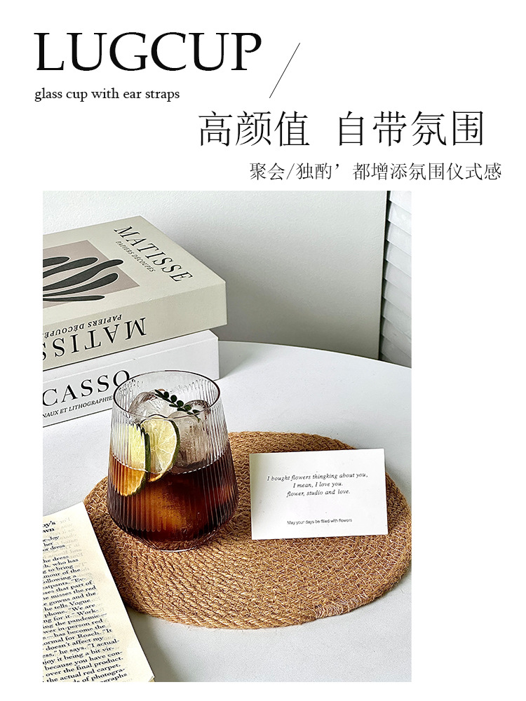 日式竖纹富士山杯ins风玻璃杯平底杯咖啡杯家用冷饮杯水杯