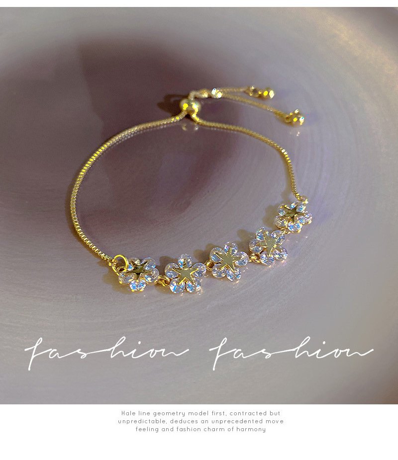 新しい花弁のブレスレットの女性のネットの赤いブレスレットは5つの小さい花の五角星を合わせて引き出して調整可能なブレスレットの卸売りを引き出します。