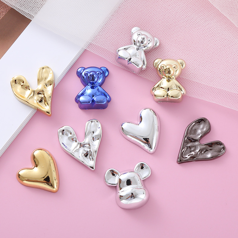 人気の電気メッキメタルベアハート型スマホケース、穴あきシューズ、樹脂製アクセサリーアクセサリー、DIY手作り材料
