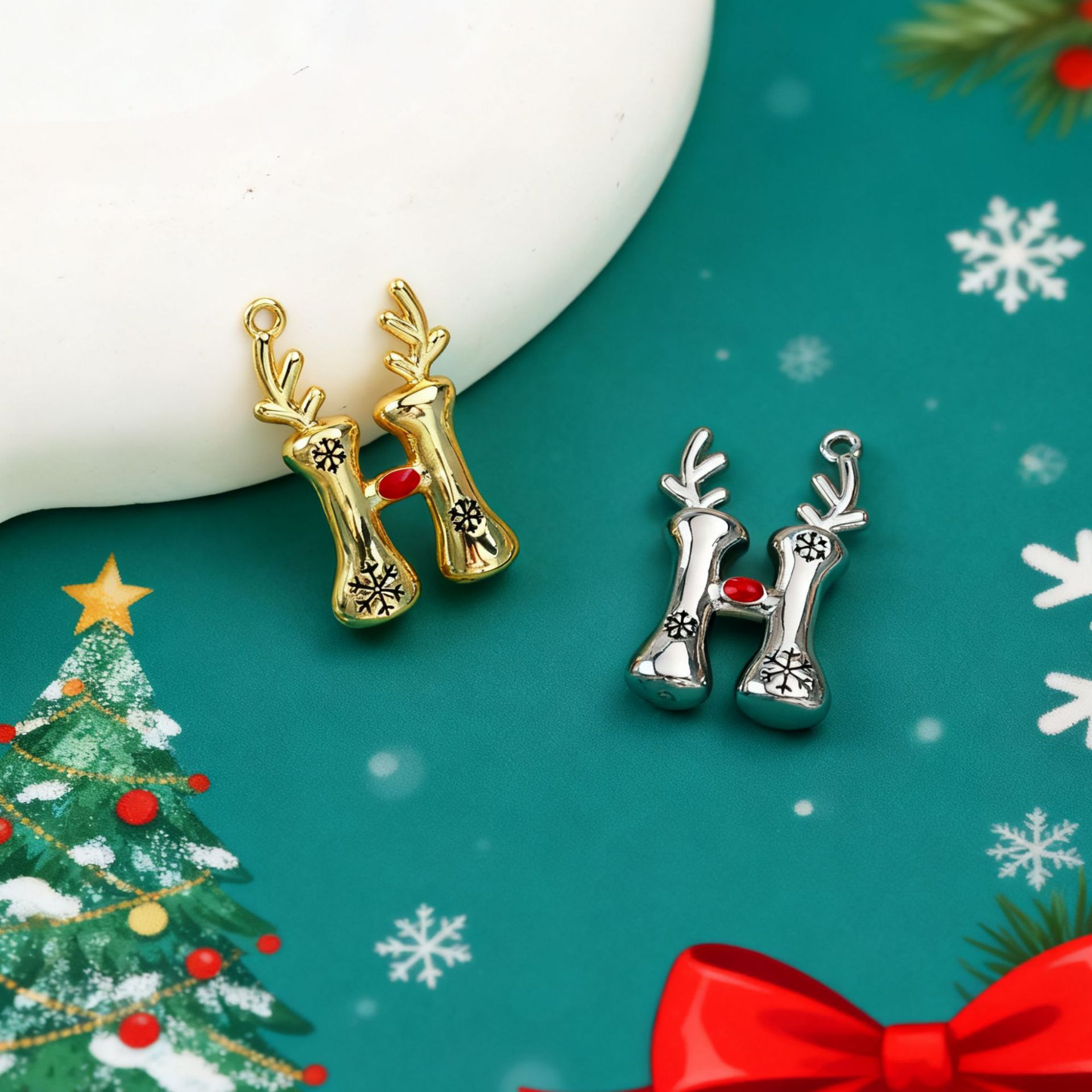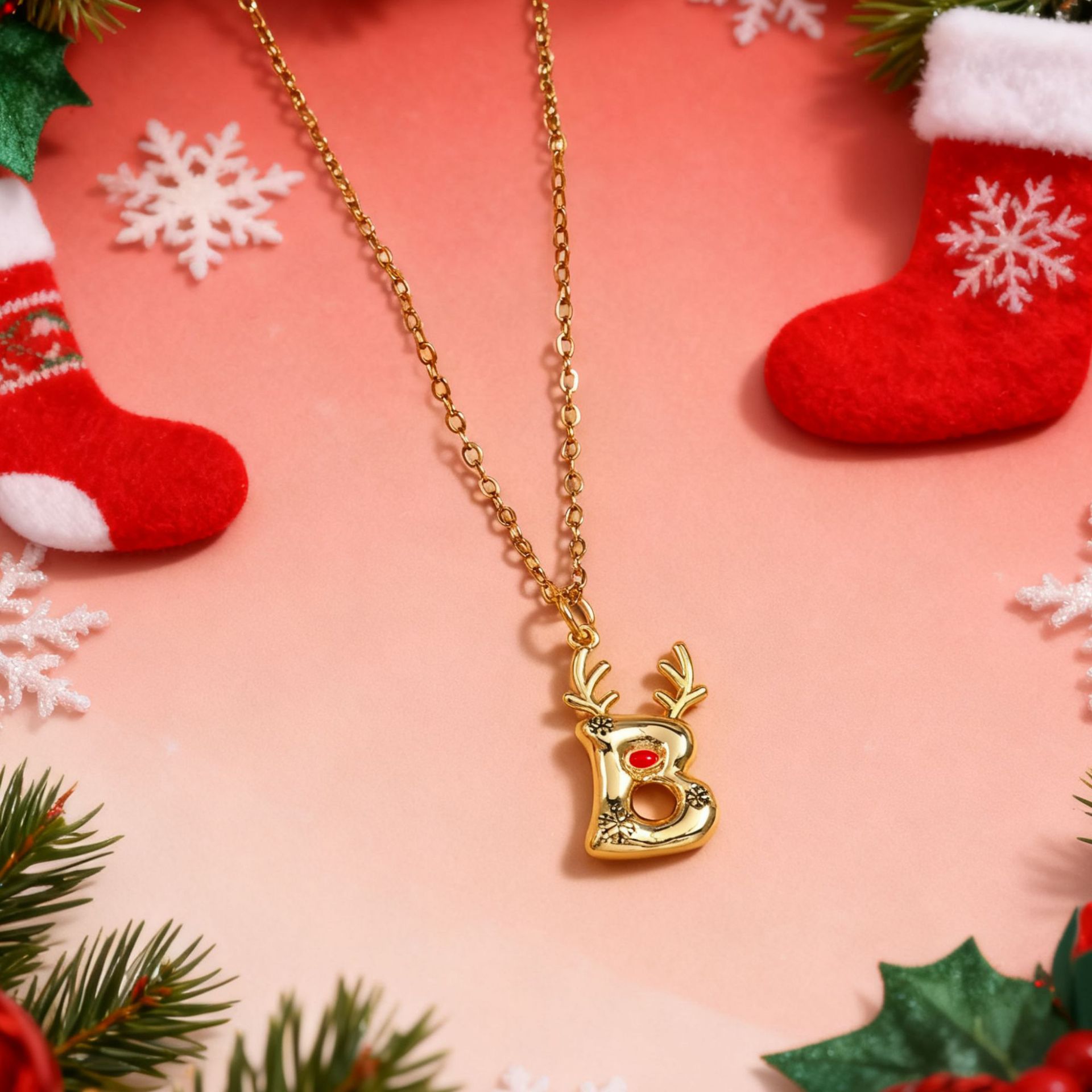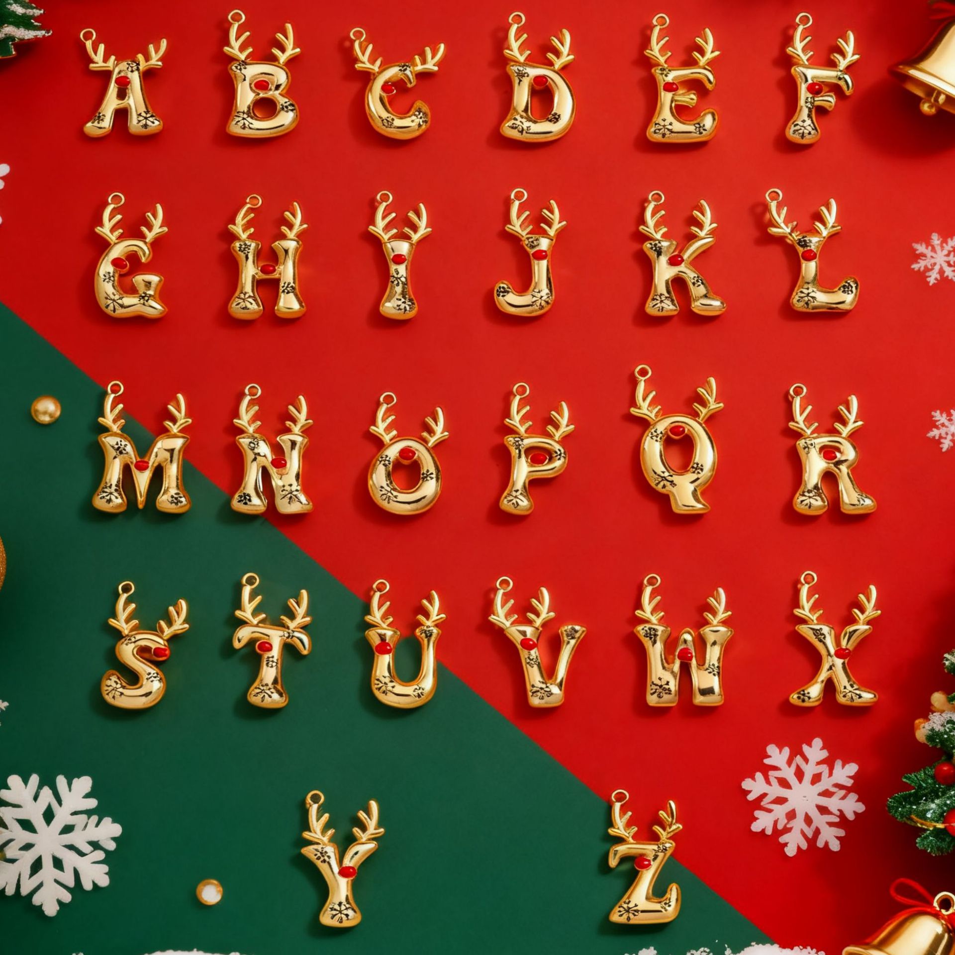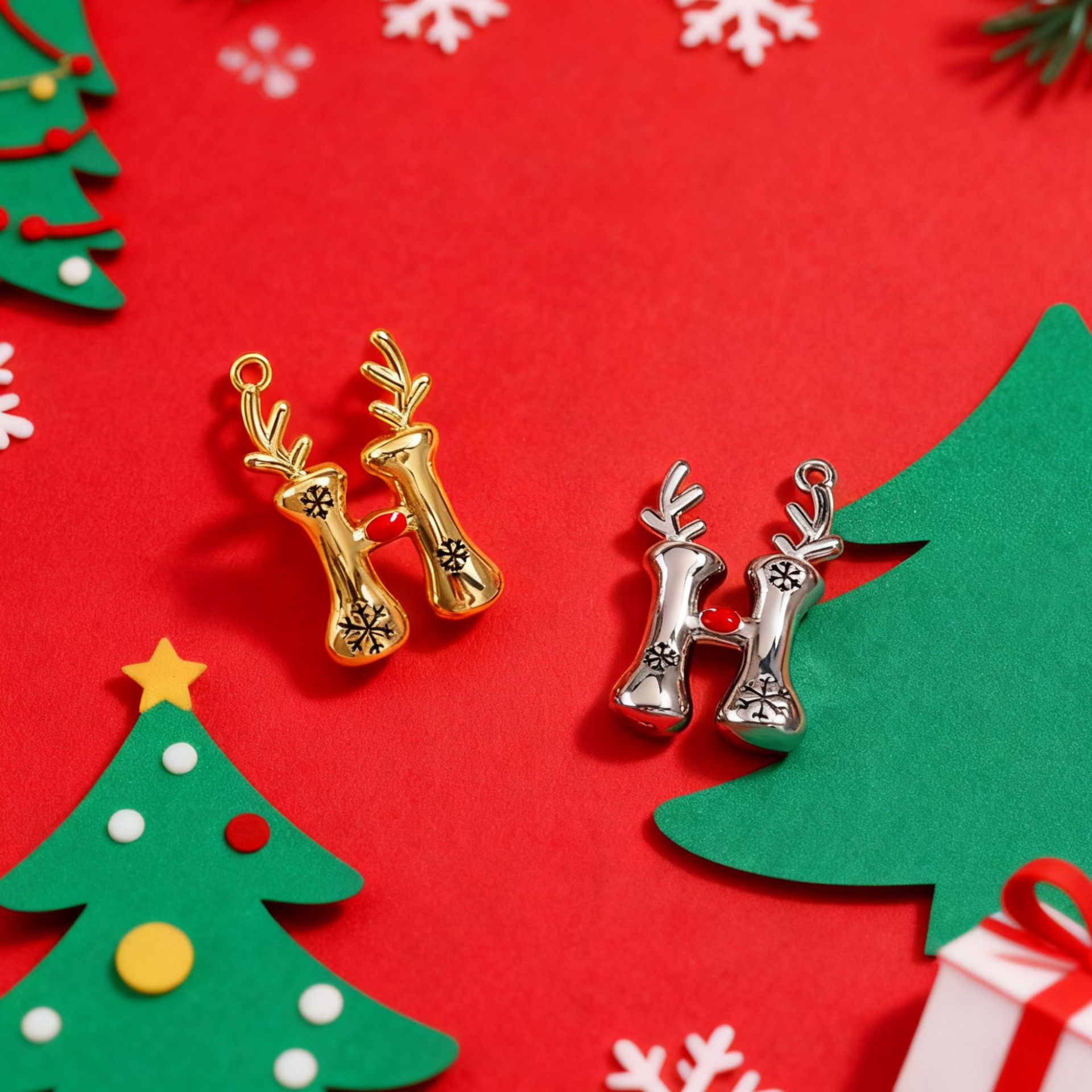 欧美跨境麋鹿圣诞字母项链可爱精致雪花鹿角圣诞节英文字母项链女