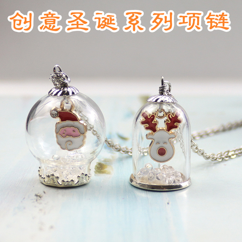 跨境亚马逊圣诞老人雪人圣诞树玻璃瓶项链圣诞节礼物饰品项链挂件