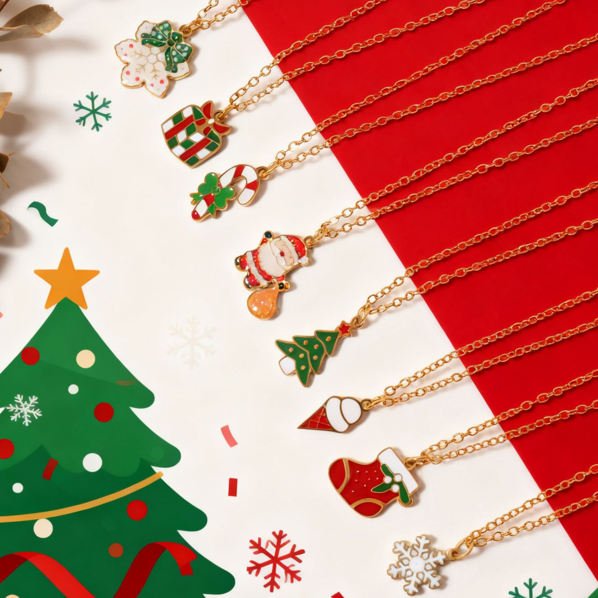 DIYクリスマスステンレス装飾品サンタクロース手袋靴下雪だるま漫画ペンダントネックレス部品卸売り