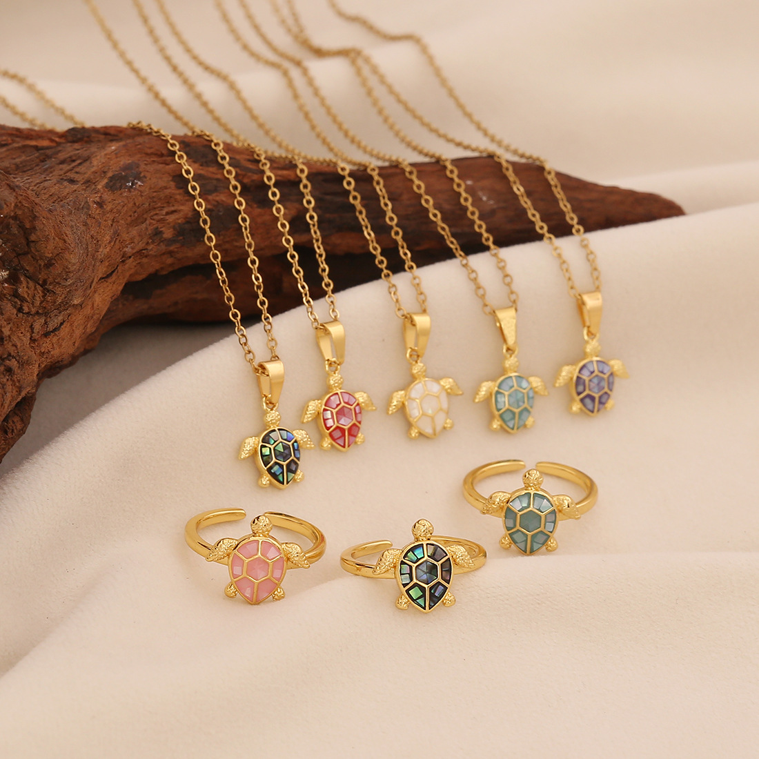 【冰萌】天然贝壳乌龟吊坠项链创意不锈钢锁骨链跨境饰品N1659