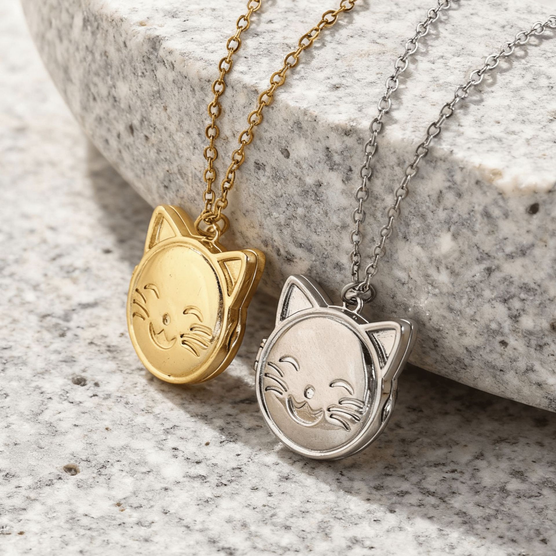时尚个性潮流照片项链可爱小猫吊坠铜镀金开合项链便携纪念相册