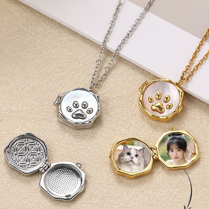クロスボーダーDIY写真ネックレス、個性的な写真ボックスペンダント、新作猫爪フォトボックス、フォトアルバムペンダント、シェルネックレス