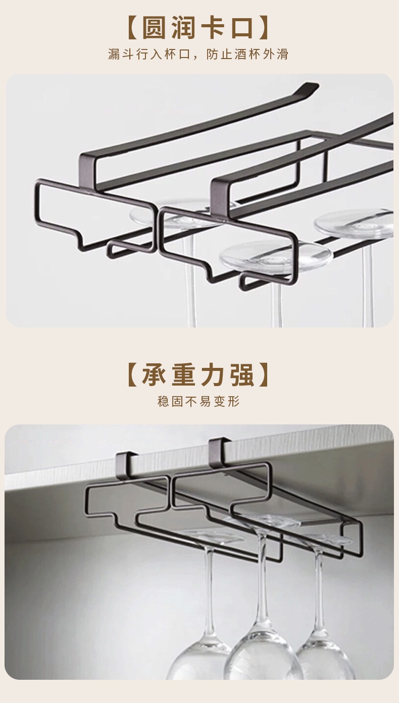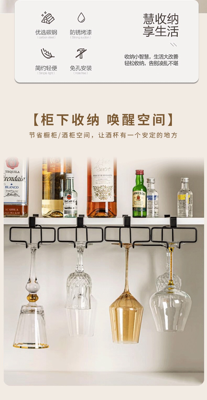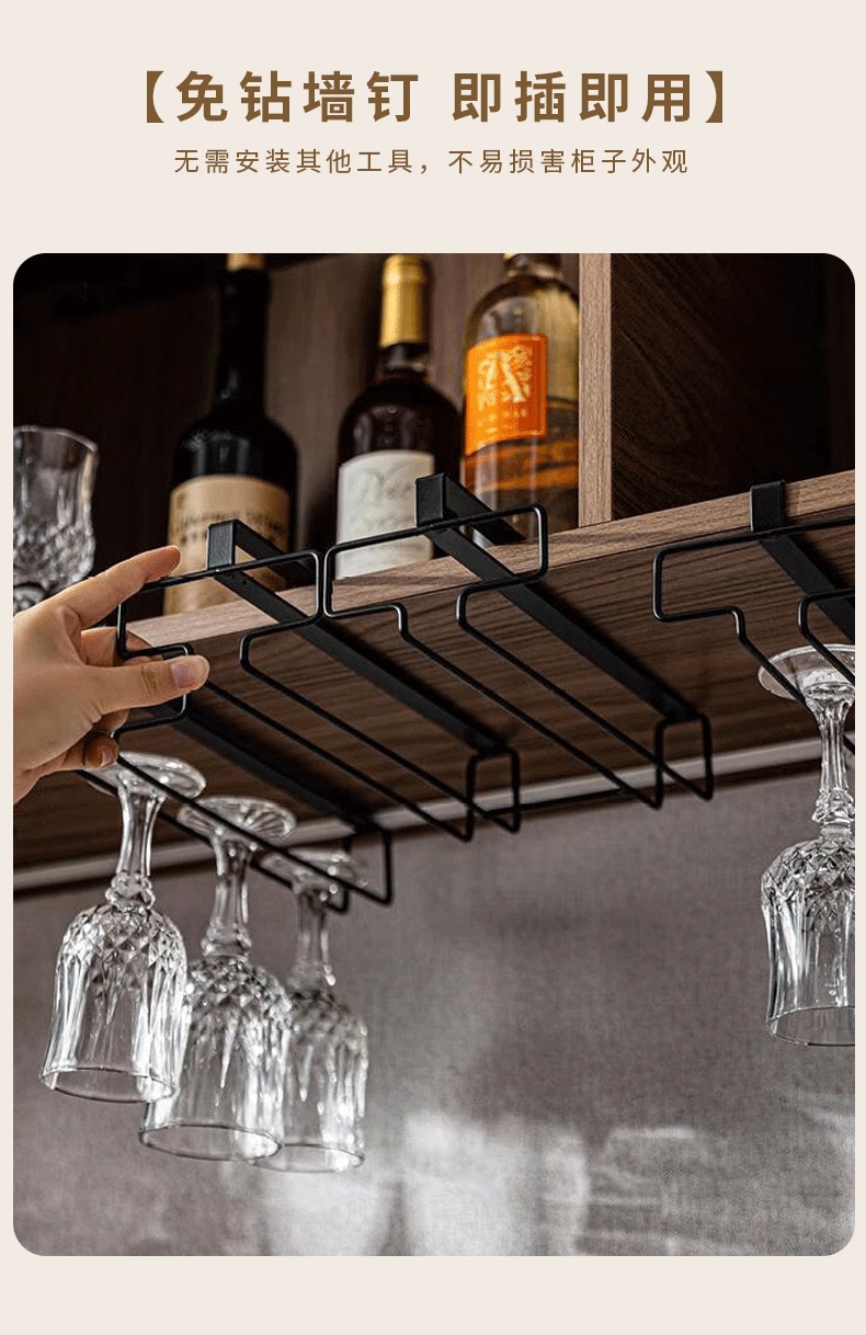 厨房客厅免打孔红酒杯架倒挂架家用高脚杯橱柜悬挂式收纳沥水吊架