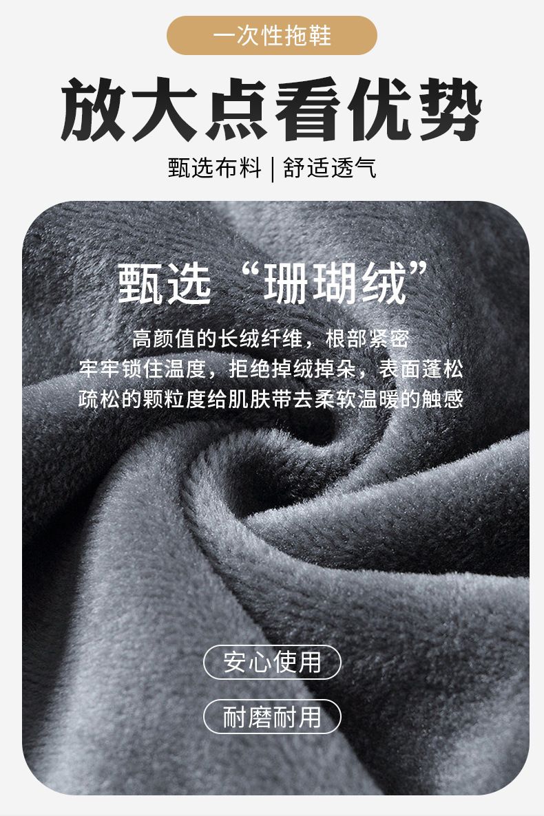 一次性珊瑚绒拖鞋星级酒店专用高档民宿加厚防滑居家待客厂家批发