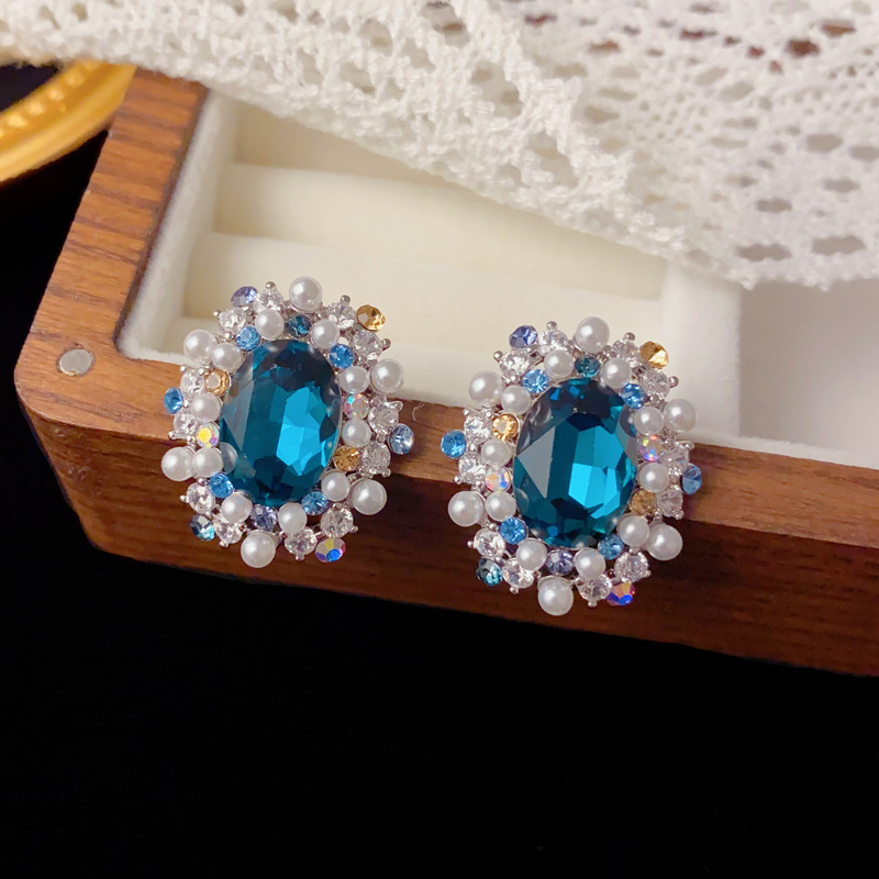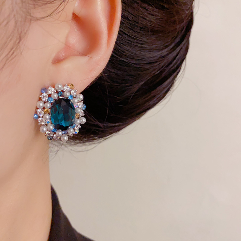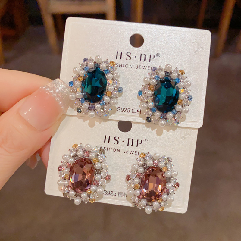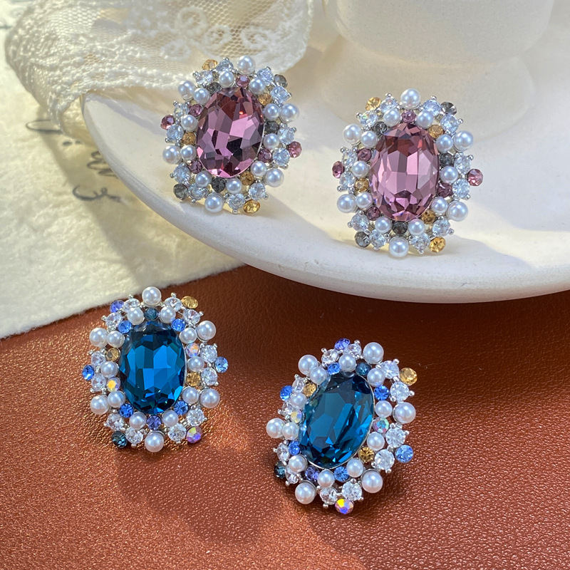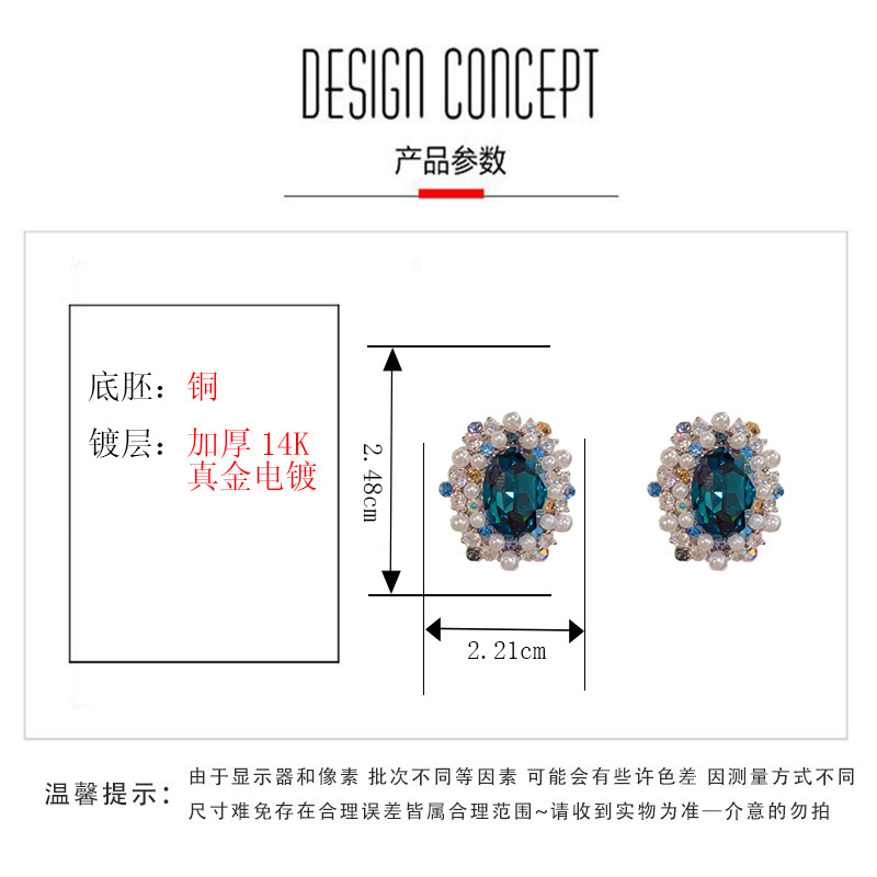 颜色 蓝色-满钻珍珠椭圆耳钉(加厚真金电镀),紫色-满钻珍珠椭圆耳钉(加厚真金电镀)