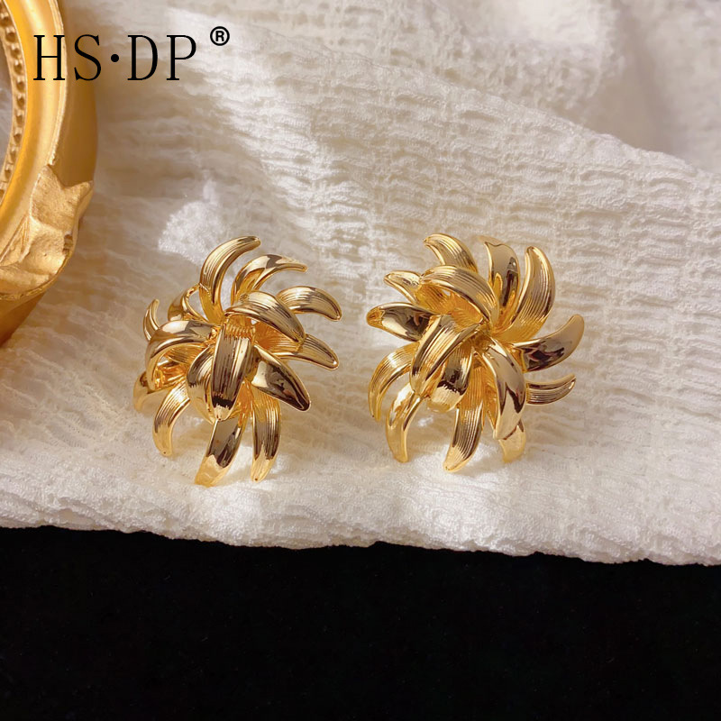 欧美跨境金属立体菊花耳钉个性轻奢时尚独特冷淡风设计感耳环批发