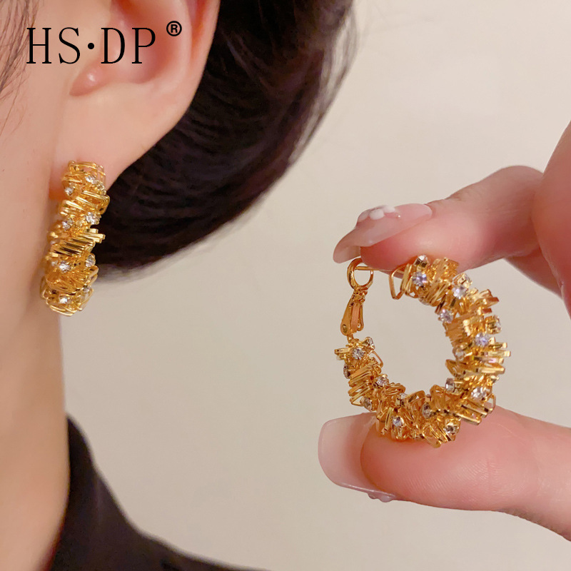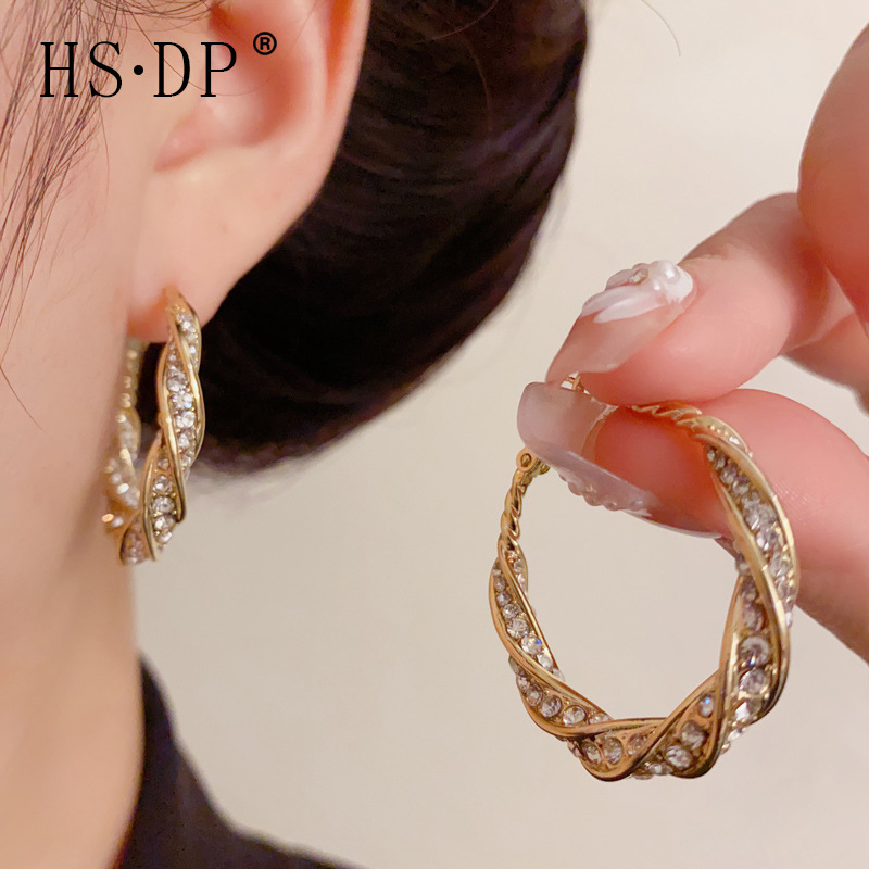 跨境复古个性夸张满钻扭曲耳圈精致轻奢高级感冷淡风超闪耳环批发