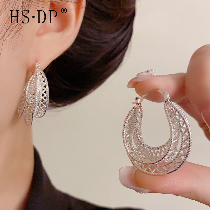 シンプルなレトロなファッションの高級感には、ドリルの金属リングのイヤリングが入っています。