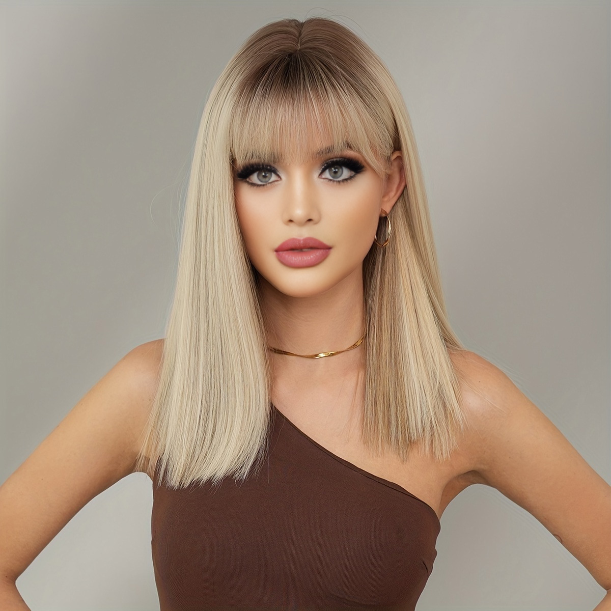 【款式】齐刘海长直发