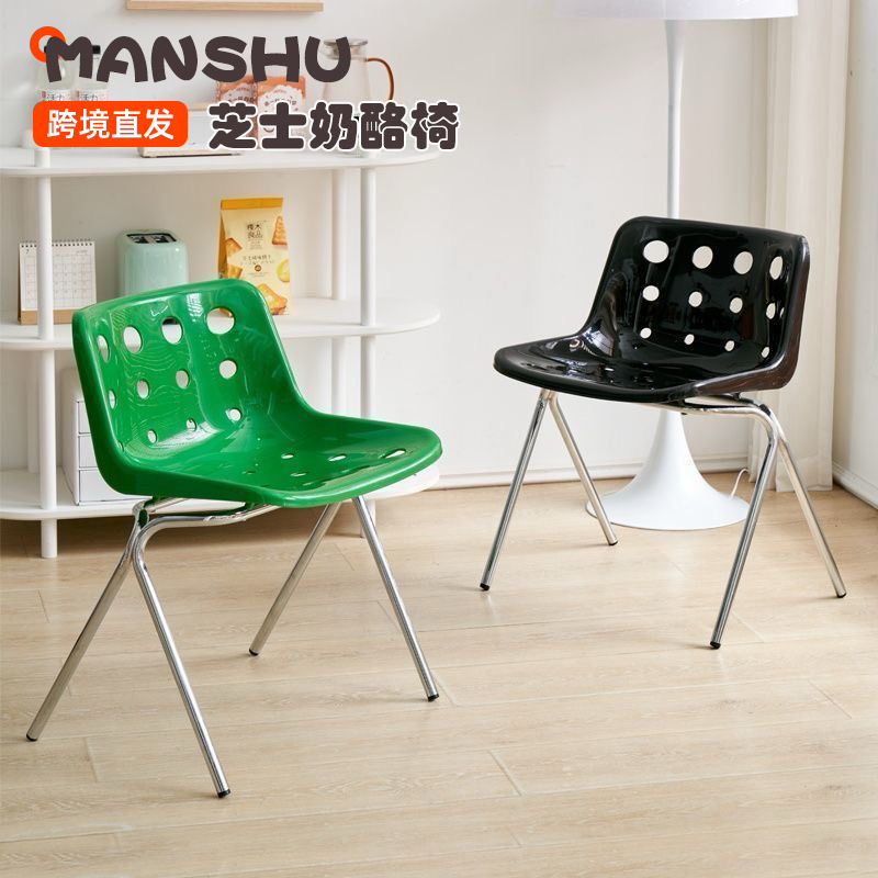 创意ins家用塑料餐椅奶酪椅子简约设计师中古餐椅奶油风靠背凳子