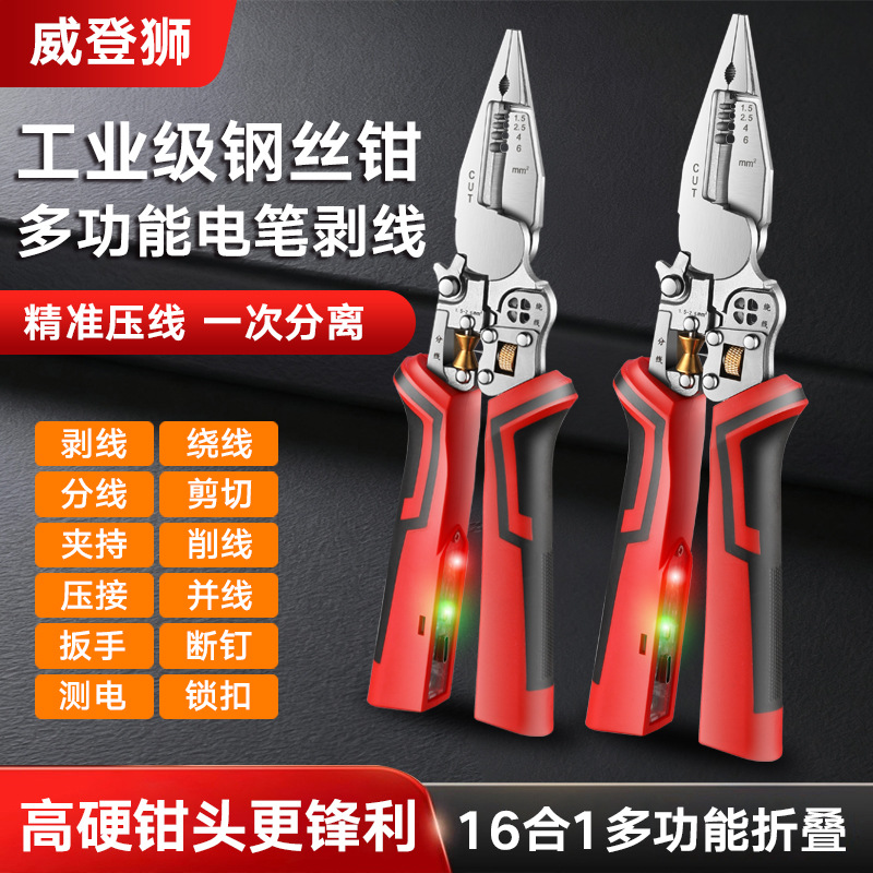 批发多功能剥线钳电工专用钳削皮分线绕线可折叠三色手柄钳类工具