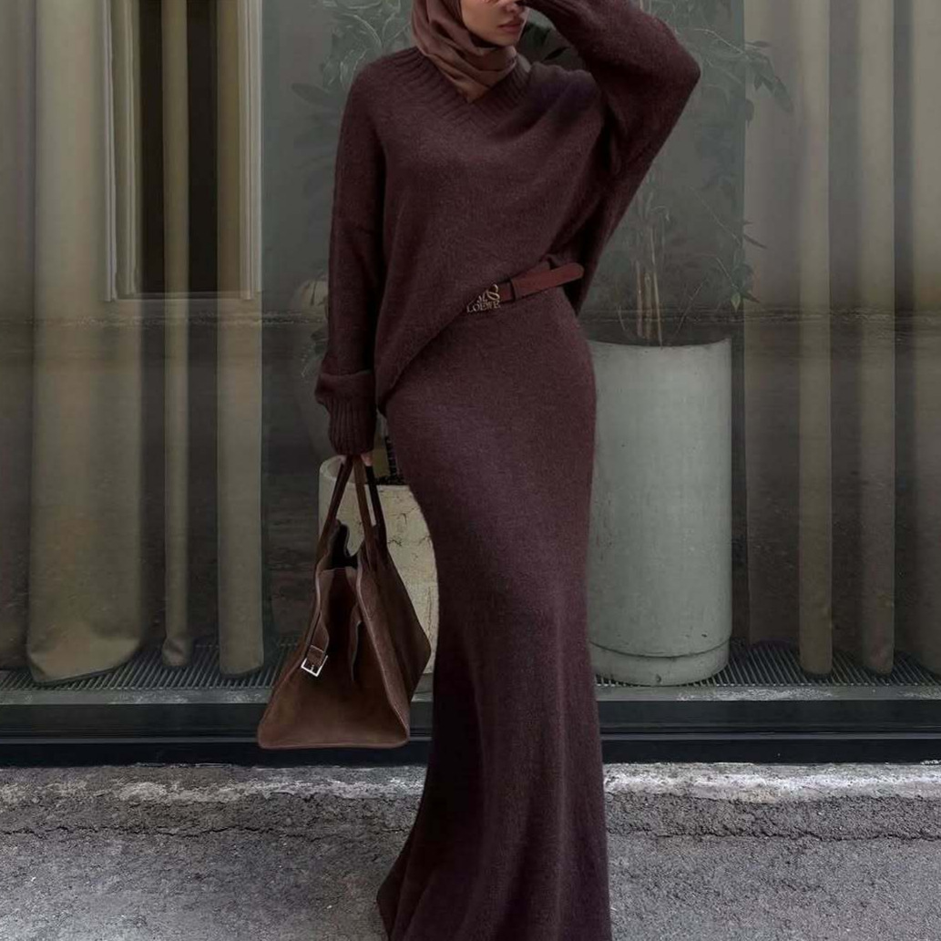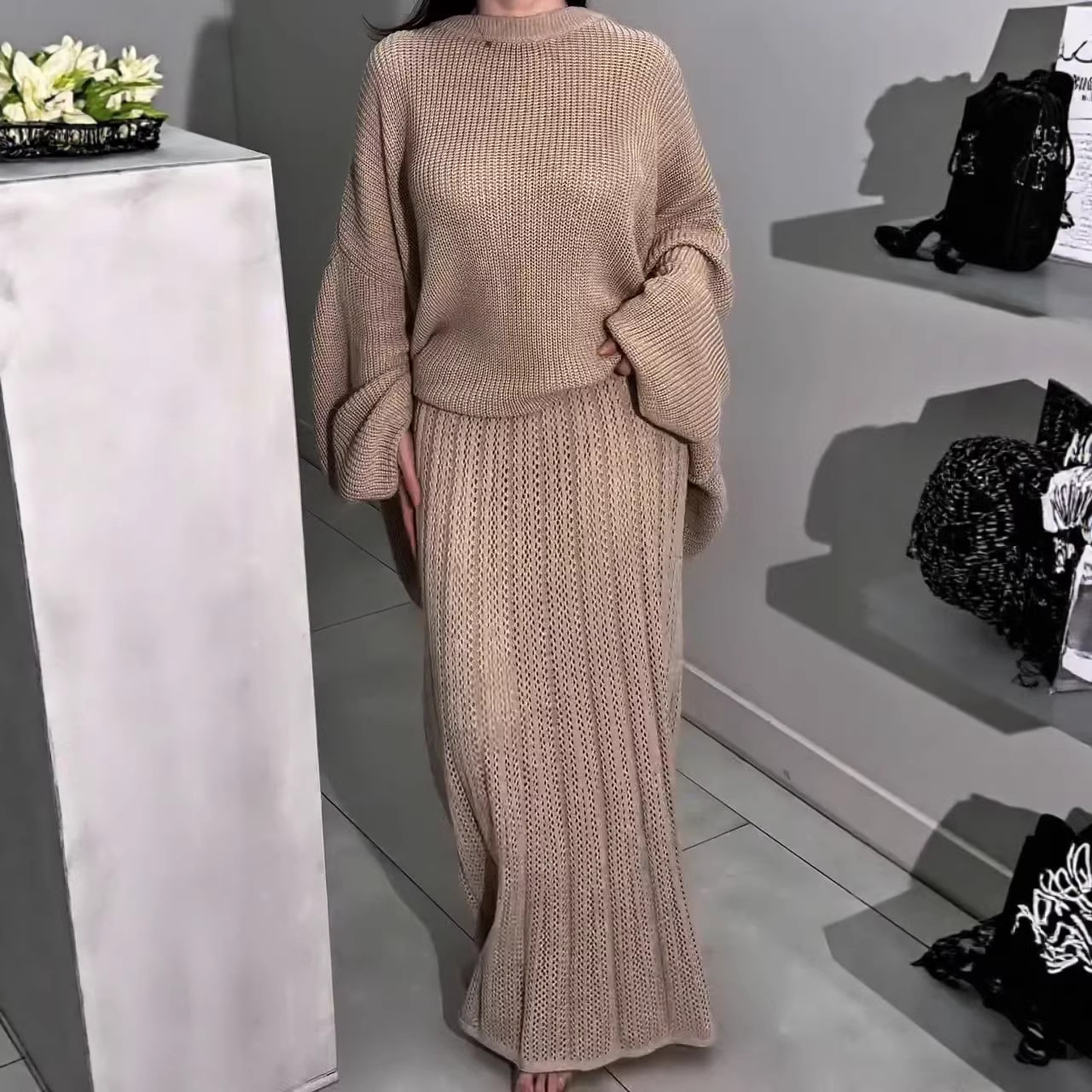 欧美跨境女装2025秋季新款针织毛衣慵懒休闲长袖上衣慵懒直筒裙