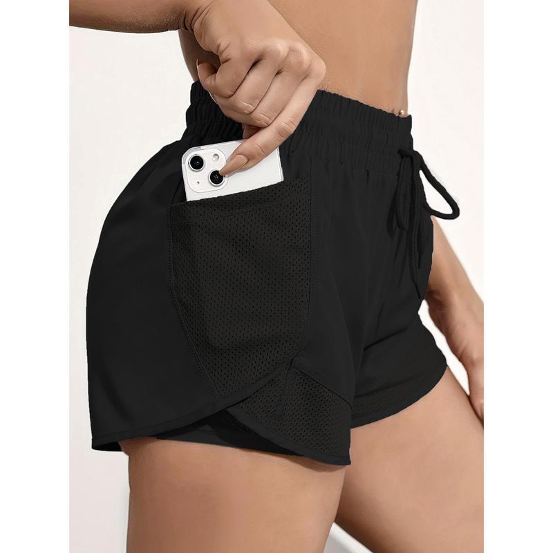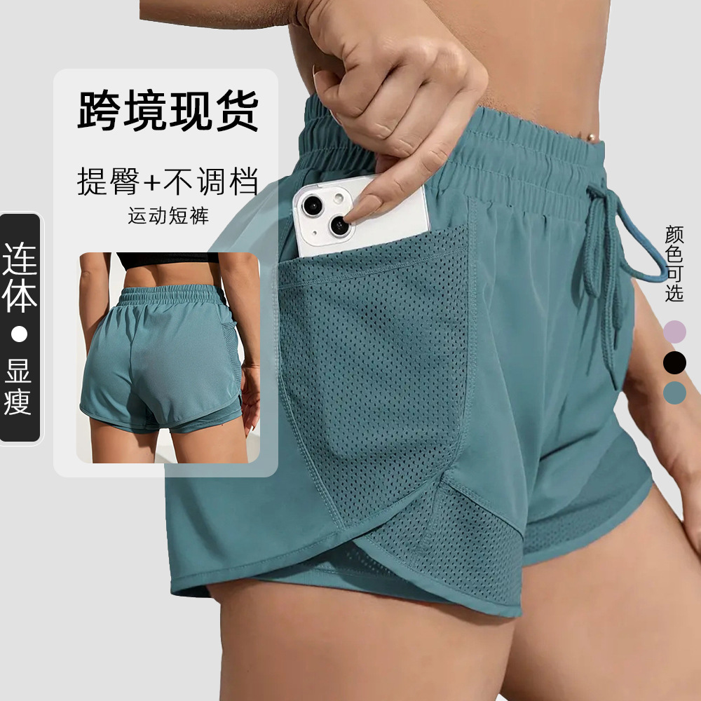 薄款速干运动短裤网纹口袋拼接瑜伽短裤跑步运动短裤女夏速干外穿