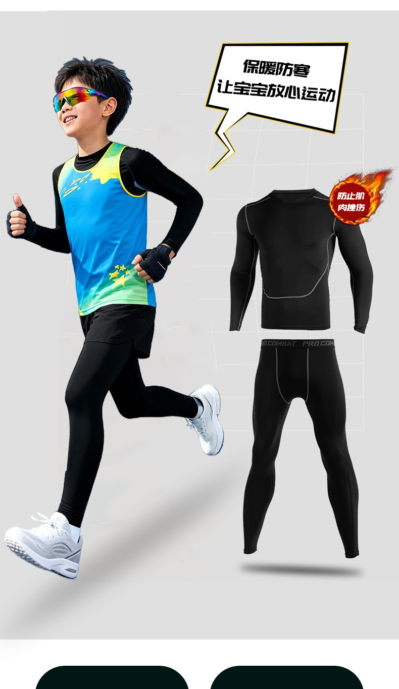 新款儿童篮球打底紧身衣训练服长袖速干男女足球运动套装秋冬印制