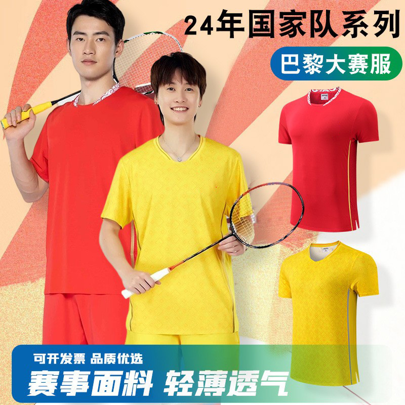 新型国家チームバドミントン服スポーツスーツ男女パリ奥夏運会チーム服印刷速乾トレーニング服