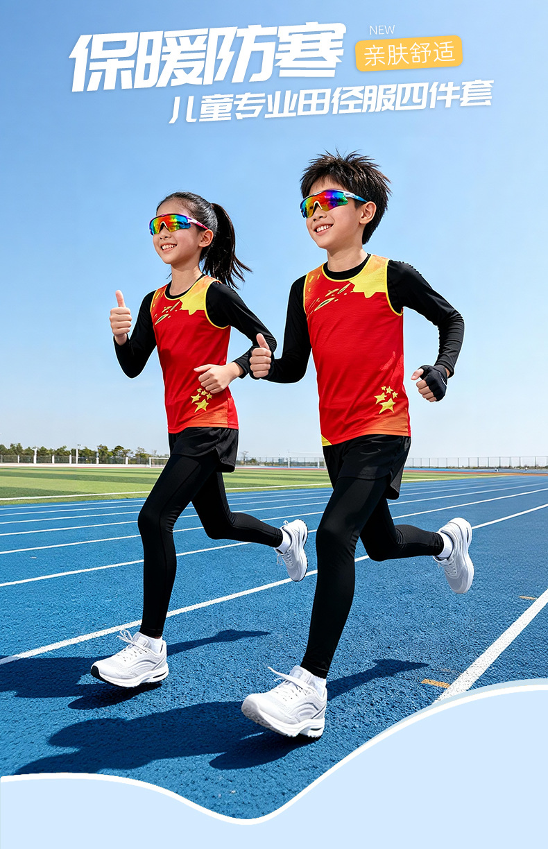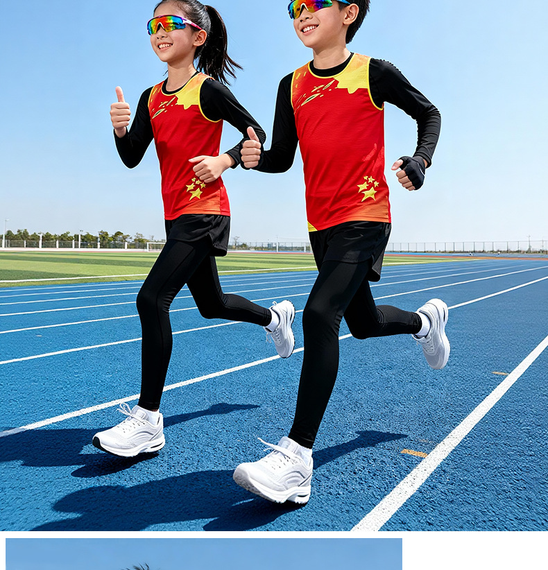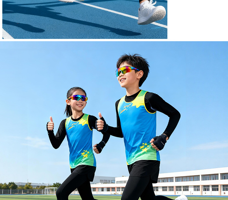 儿童田径服长袖紧身衣男女跑步背心比赛队服印制马拉松训练服秋冬