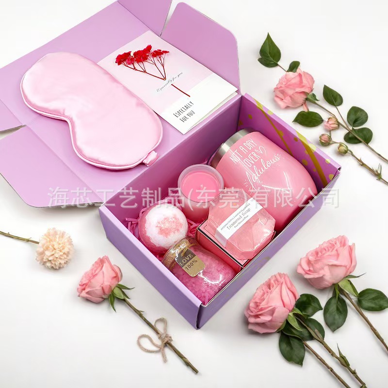アマゾンピンクギフトボックスアロマセラピー目の保護ウォーターカップキャンドルバスソルト手作り石鹸海塩セットお土産卸売