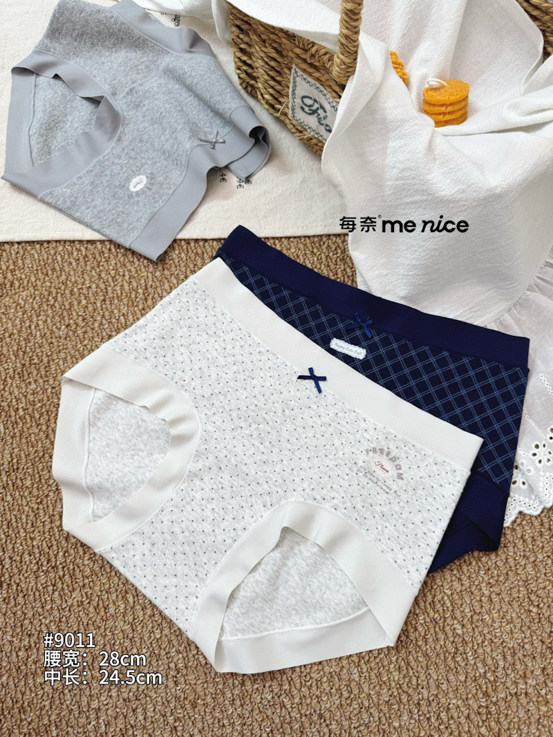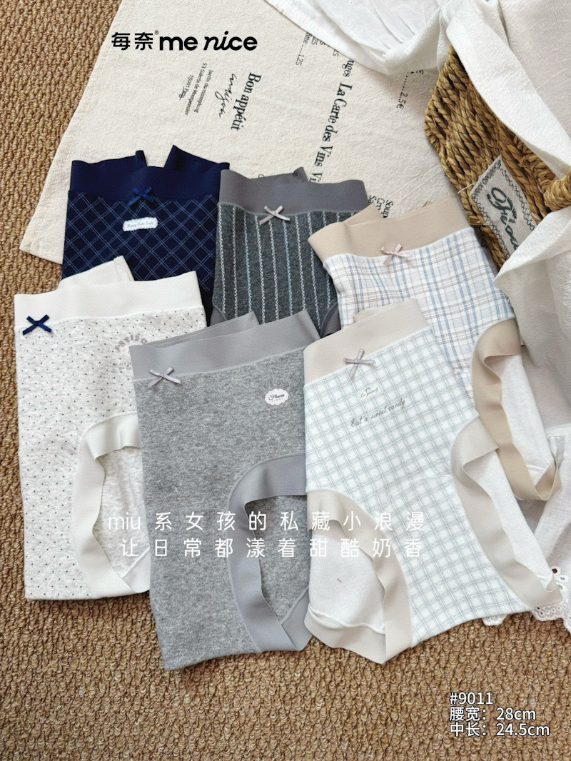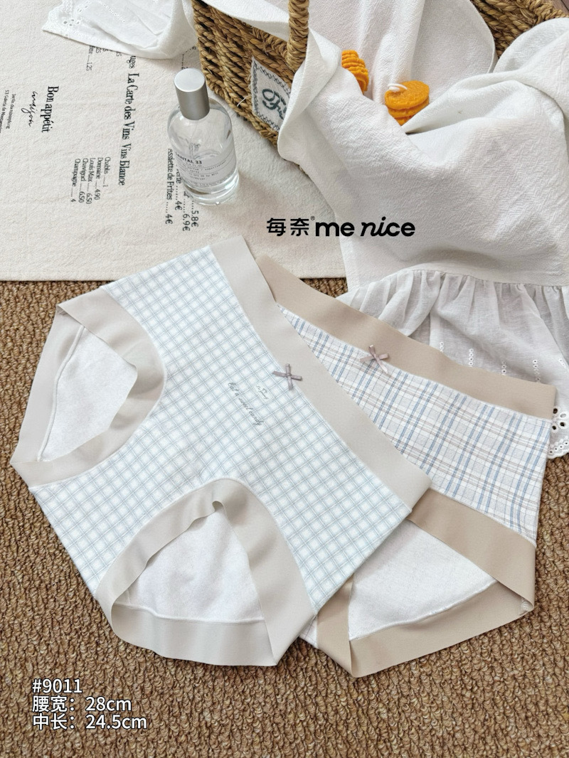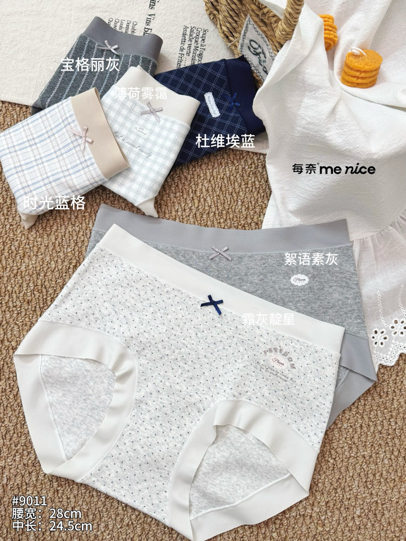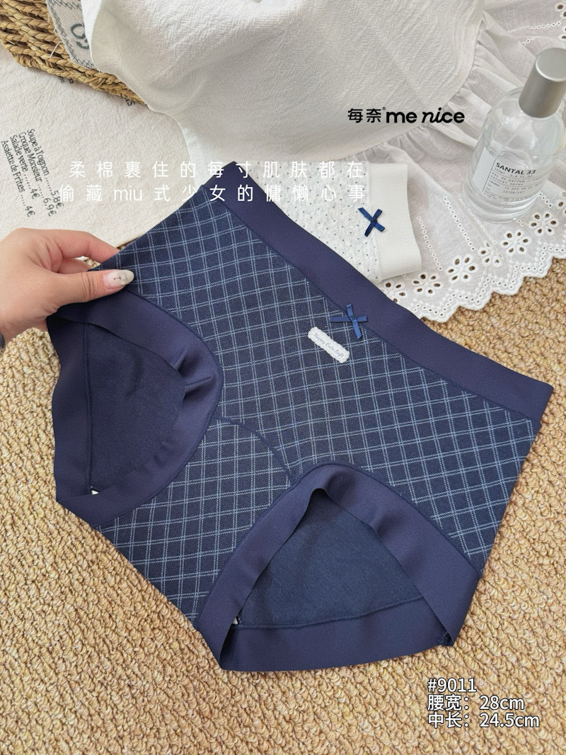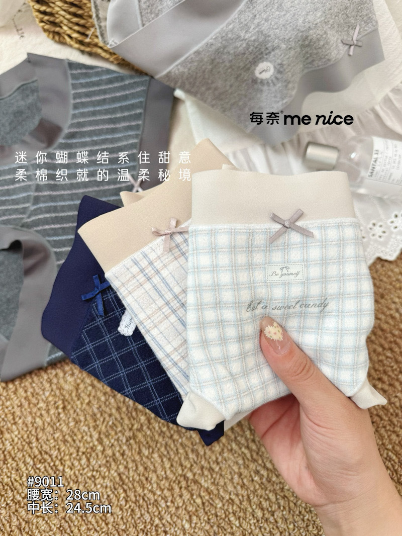 爆款每奈小熊印花内裤女蓝白格纹蝴蝶结中腰纯棉裆舒适三角裤批发