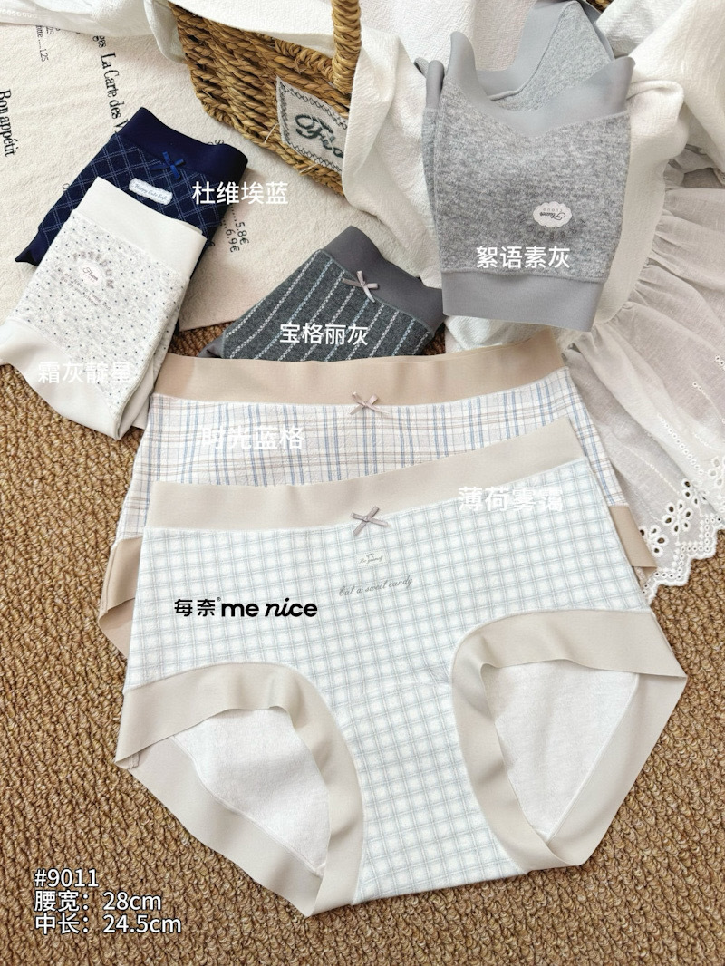 低饱和格纹透气棉女生内裤灰色系无痕包臀大弹力少女三角内裤批发