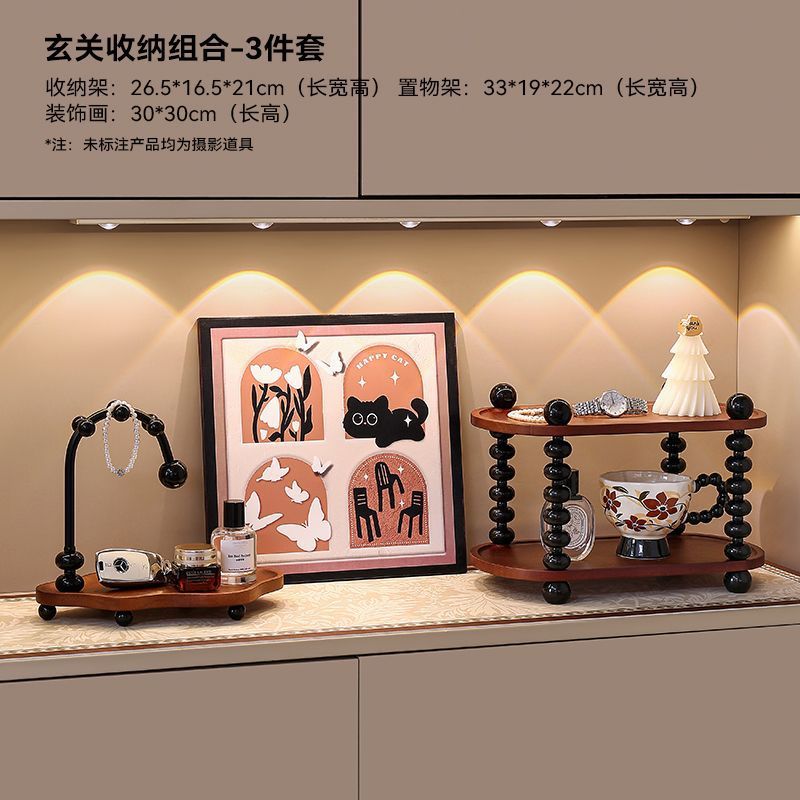 复古玄关摆件钥匙收纳置物架客厅家居中古风装饰品桌面餐边柜摆设