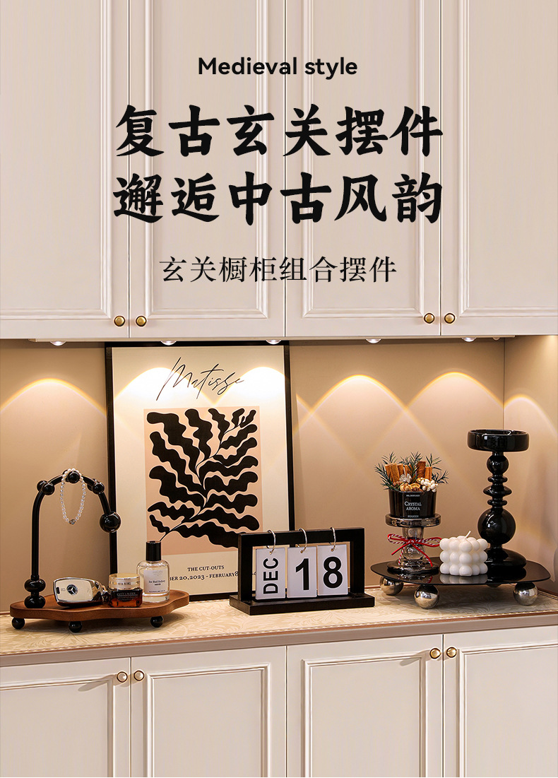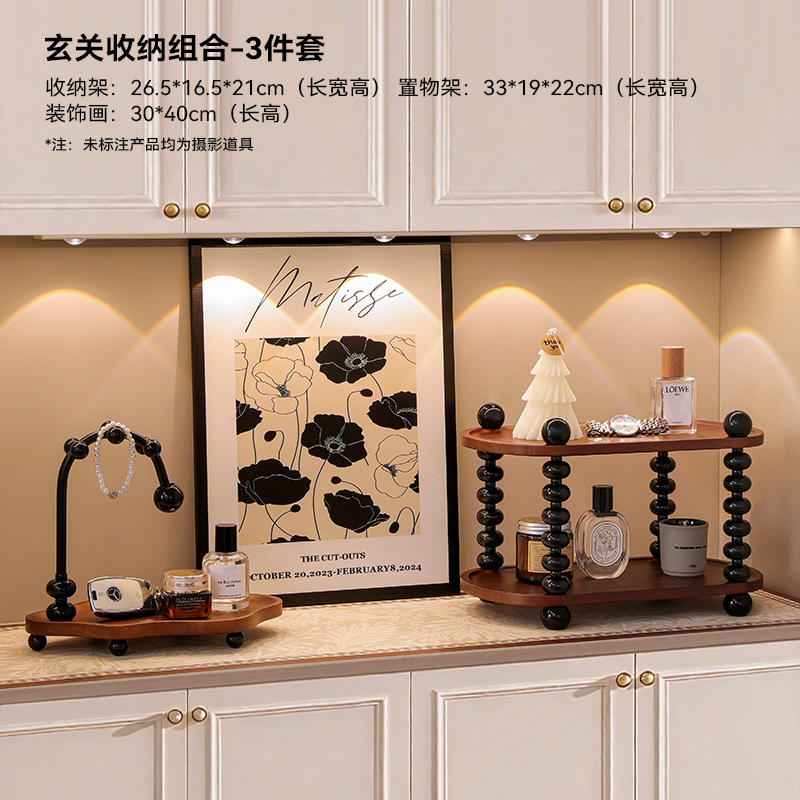 中古风玄关装饰摆件放钥匙收纳进门口法式复古鞋柜软装新中式摆画