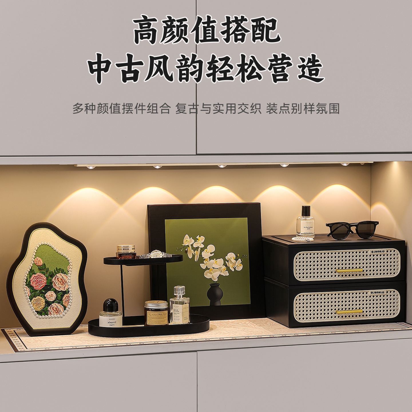 创意摆件轻奢氛围客厅电视机柜摆件入户玄关处收纳柜台装饰品摆件