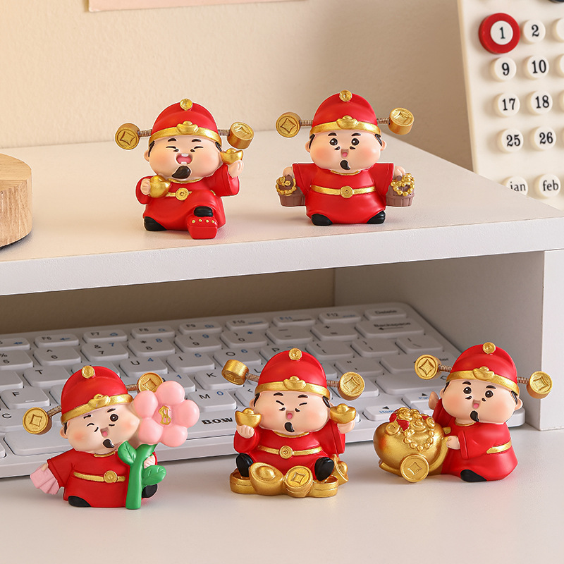 富の神の小さい置物のデスクトップの招財の装飾品の事務室の良いもののステーションの贈り物の新年の置物の神の仙人は金持ちになります。