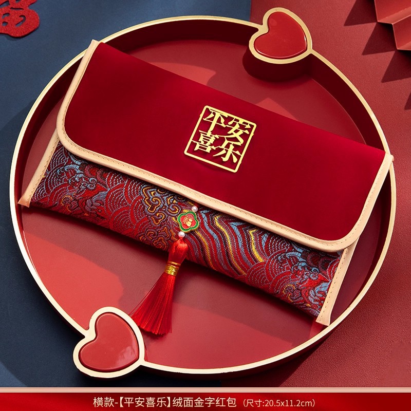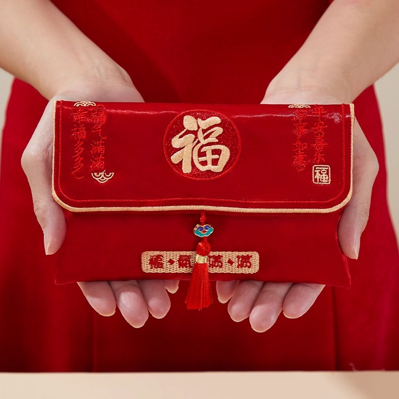 平和と喜びの布製紅封筒2026年新作春節用千元紅封筒刺繍入り紅封筒