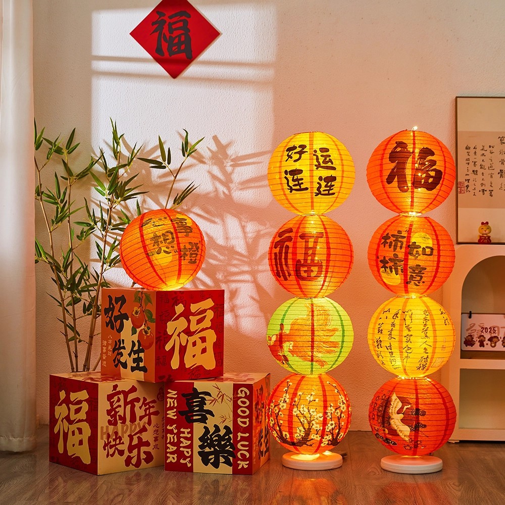 2026年馬年福字提灯 新年春節屋外装飾 古風紙提灯飾り串 年越しショッピングモール装飾吊り飾り