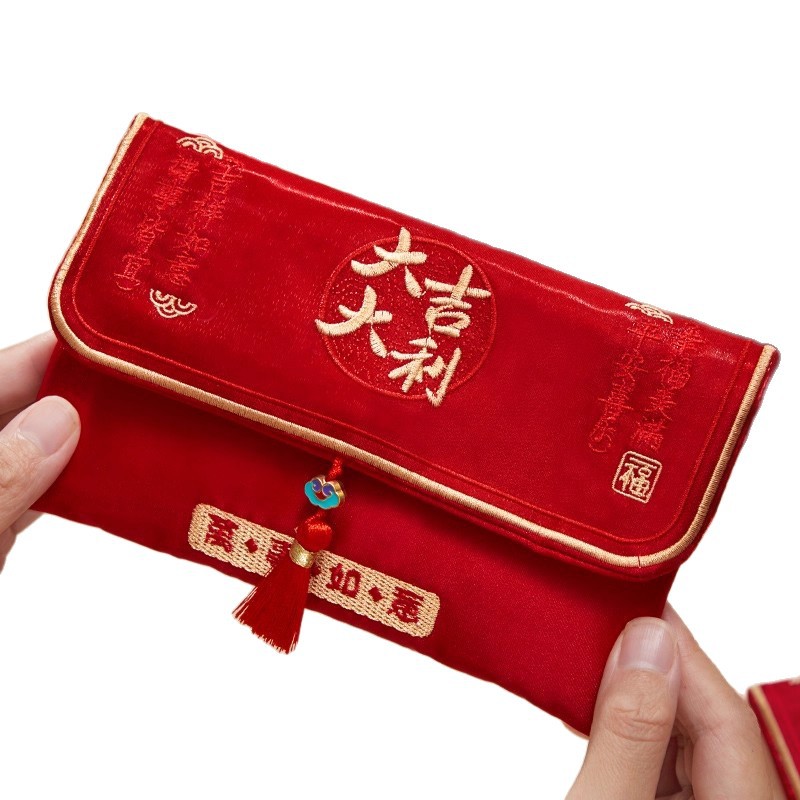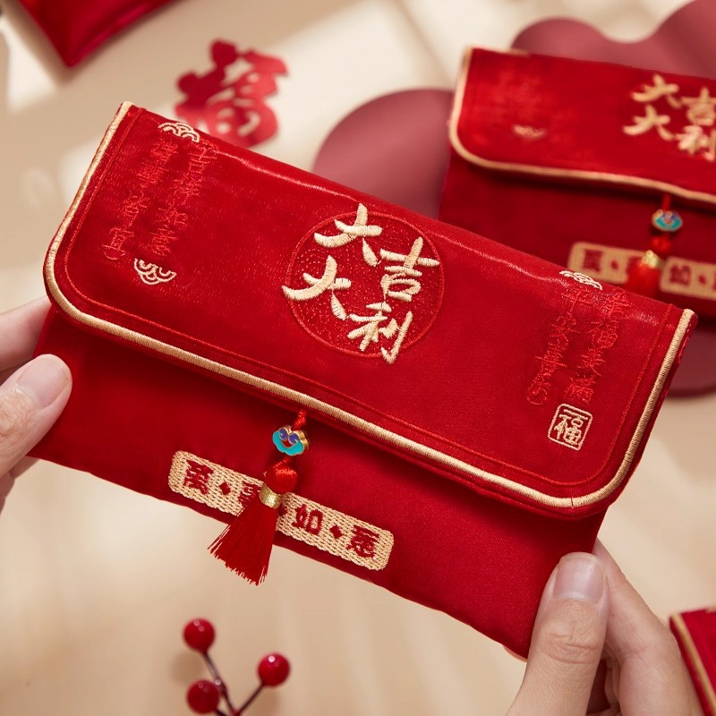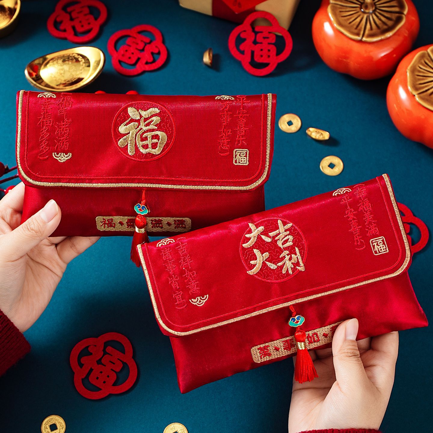 2026新款春节压岁布艺绣花红包中国风大吉大利送万元父母布利是封