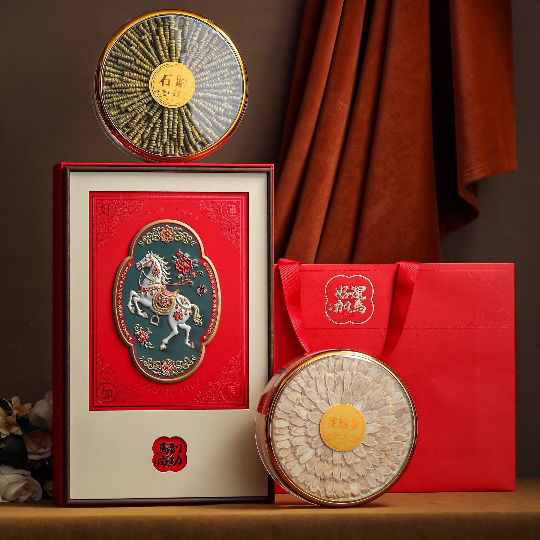 新年马到成功五拼通用海味礼品盒空盒鱼胶人参陈皮石斛燕窝包装盒
