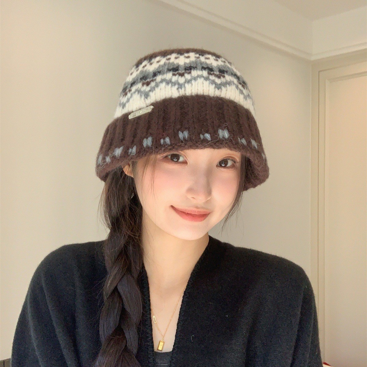 费尔岛风提花针织帽女日系新款秋冬保暖护耳复古气质时尚毛线帽潮