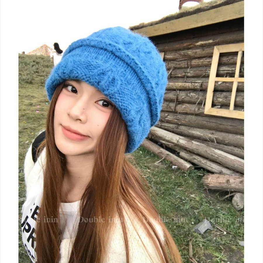 Double inin 韩版绞花针织毛线帽女时髦保暖冷帽百搭显脸小包头帽