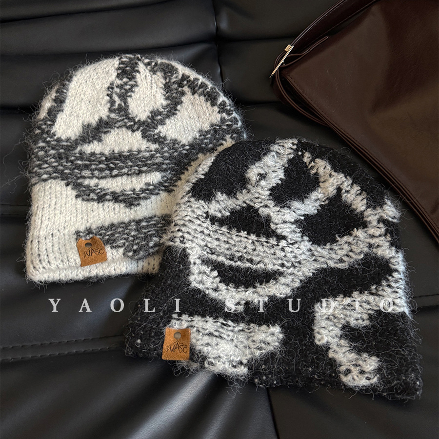 YAOLI涂鸦混色~美式复古含羊毛针织套头帽子女秋冬保暖毛线帽男