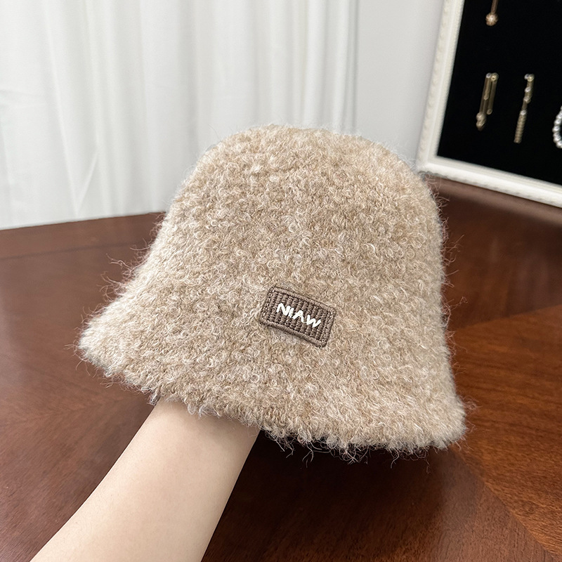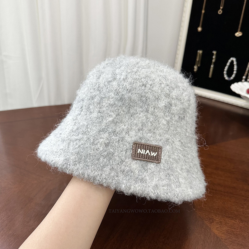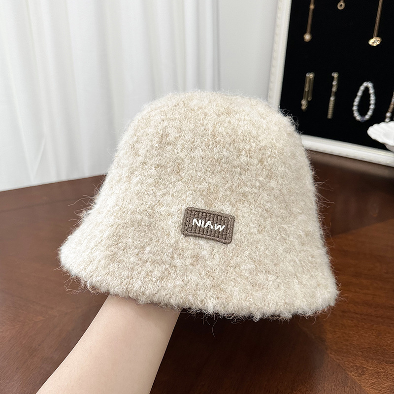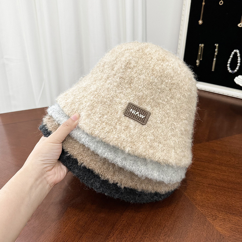 冬季毛绒保暖水桶帽ins日系韩版显脸小百搭渔夫帽简约贴标盆帽潮