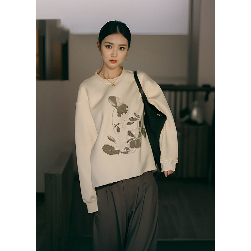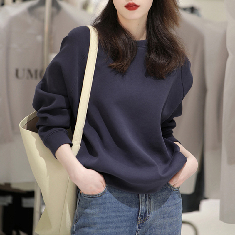 2025年早春新作、ゆったりとしたクラシックなレトロデザイン、通勤にも使える万能なラウンドネック長袖スウェットシャツ
