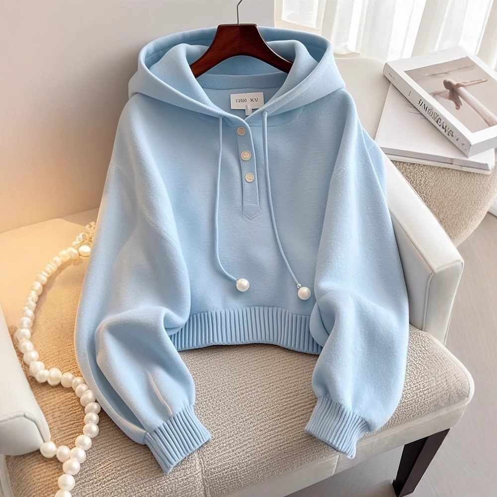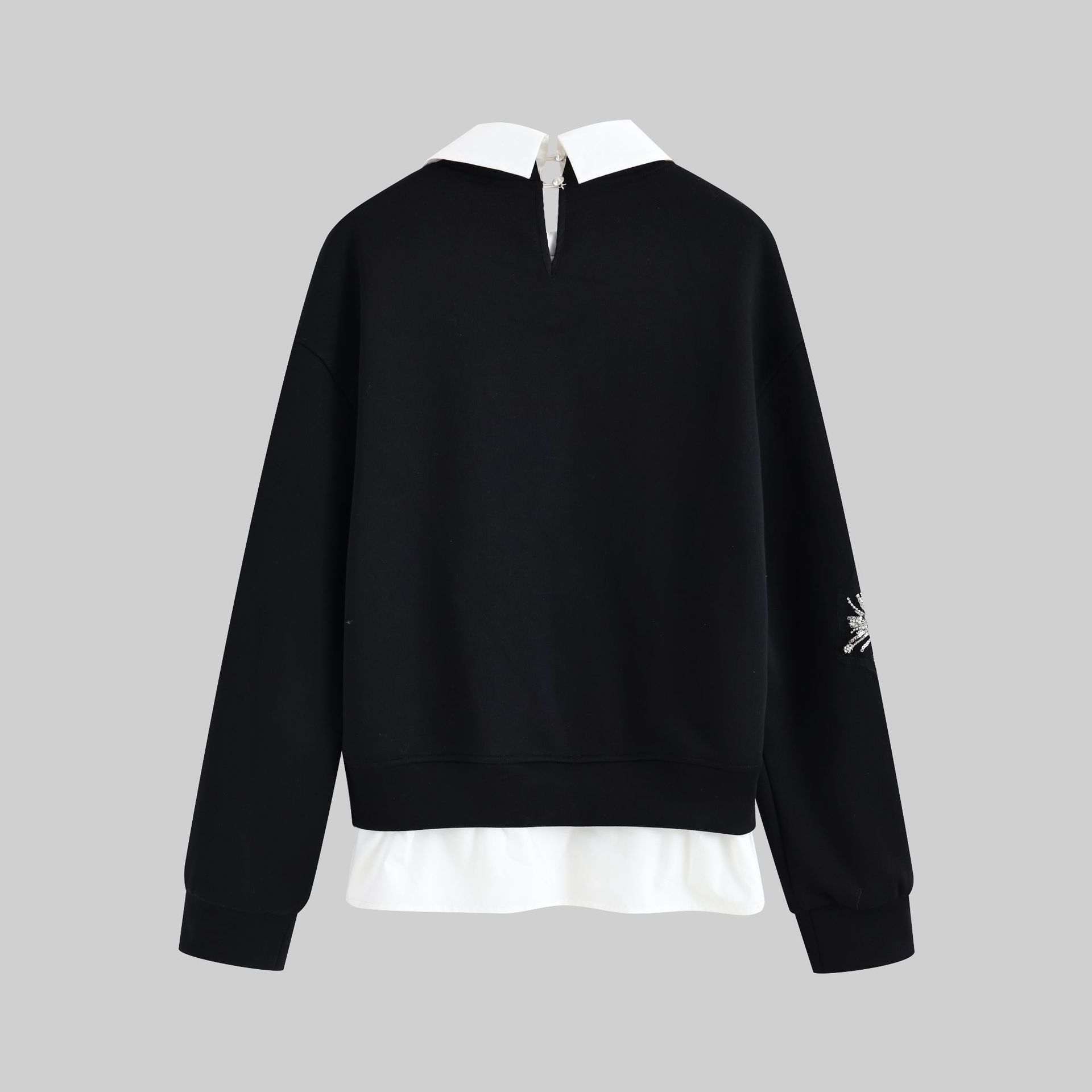 2025秋冬新款假两件POLO领卫衣女秋冬新款设计感重工钉珠长袖上衣