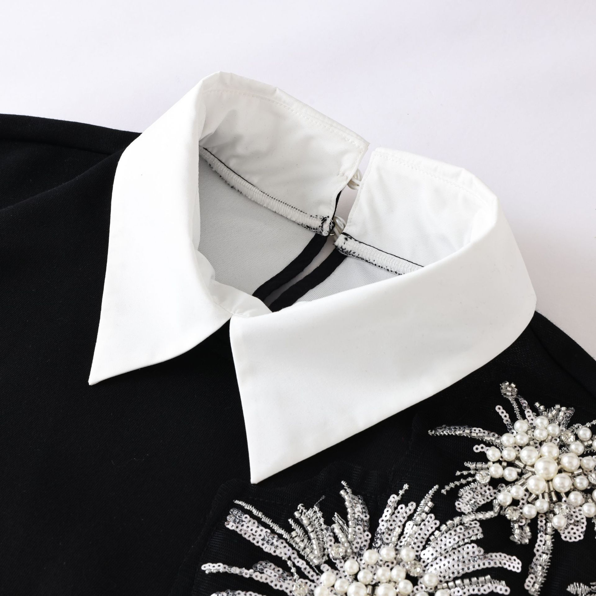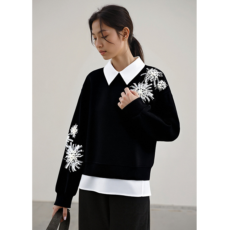 设计感亮片钉珠花朵卫衣女2025年秋冬新款假两件翻领长袖时尚上衣