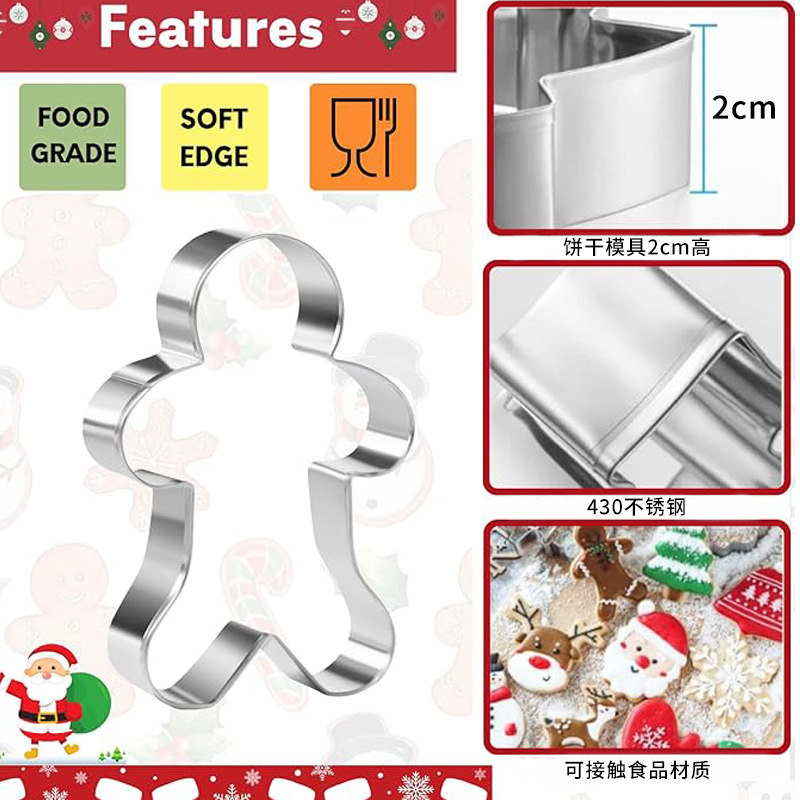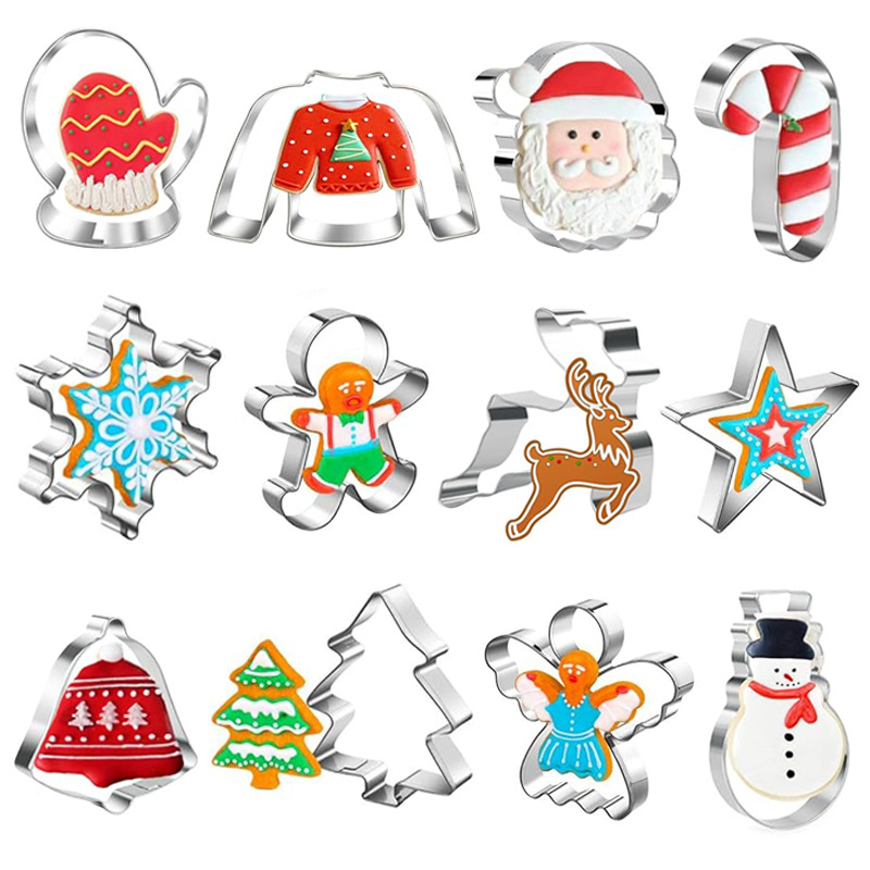 圣诞节12件套不锈钢饼干模具圣诞老人切模姜饼人雪人果蔬按压模