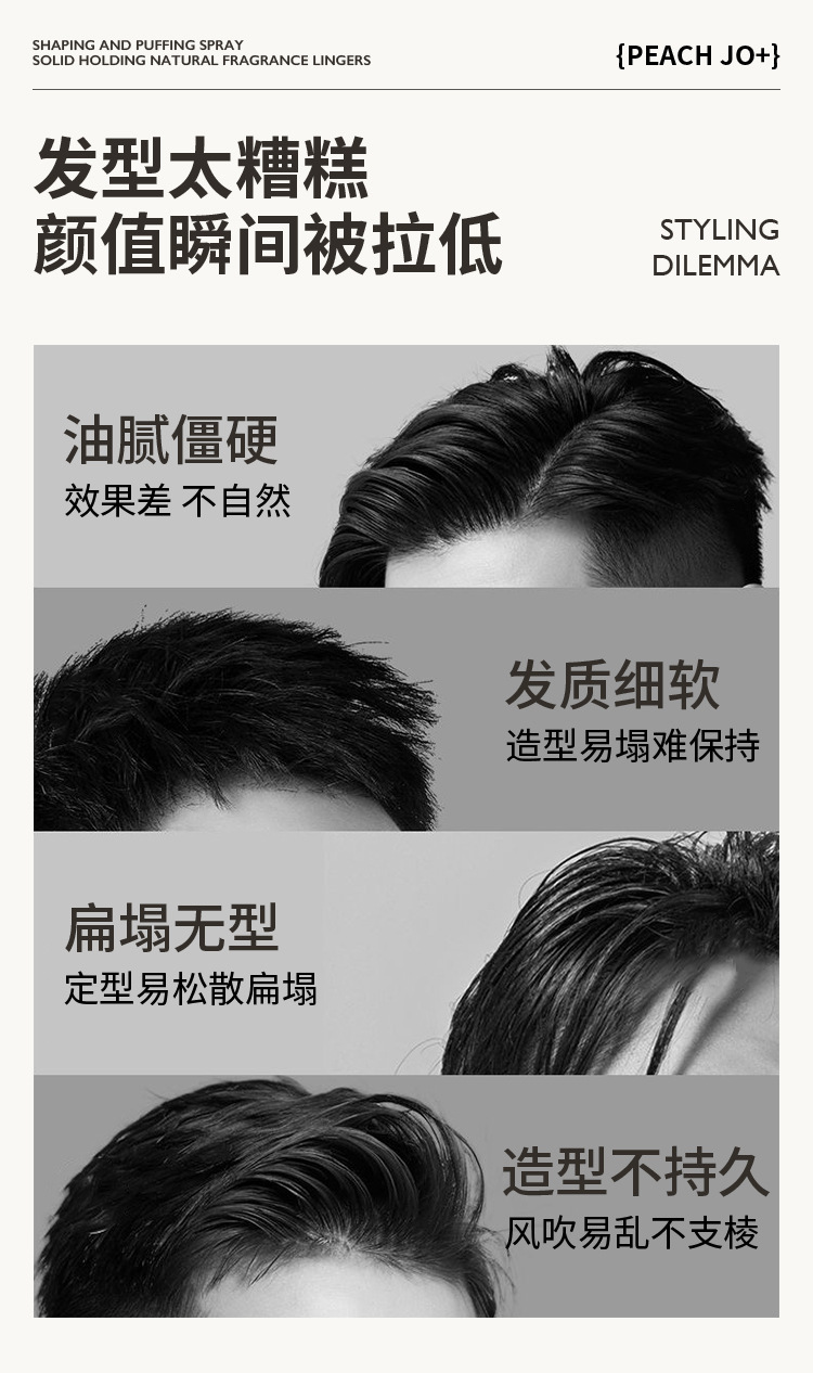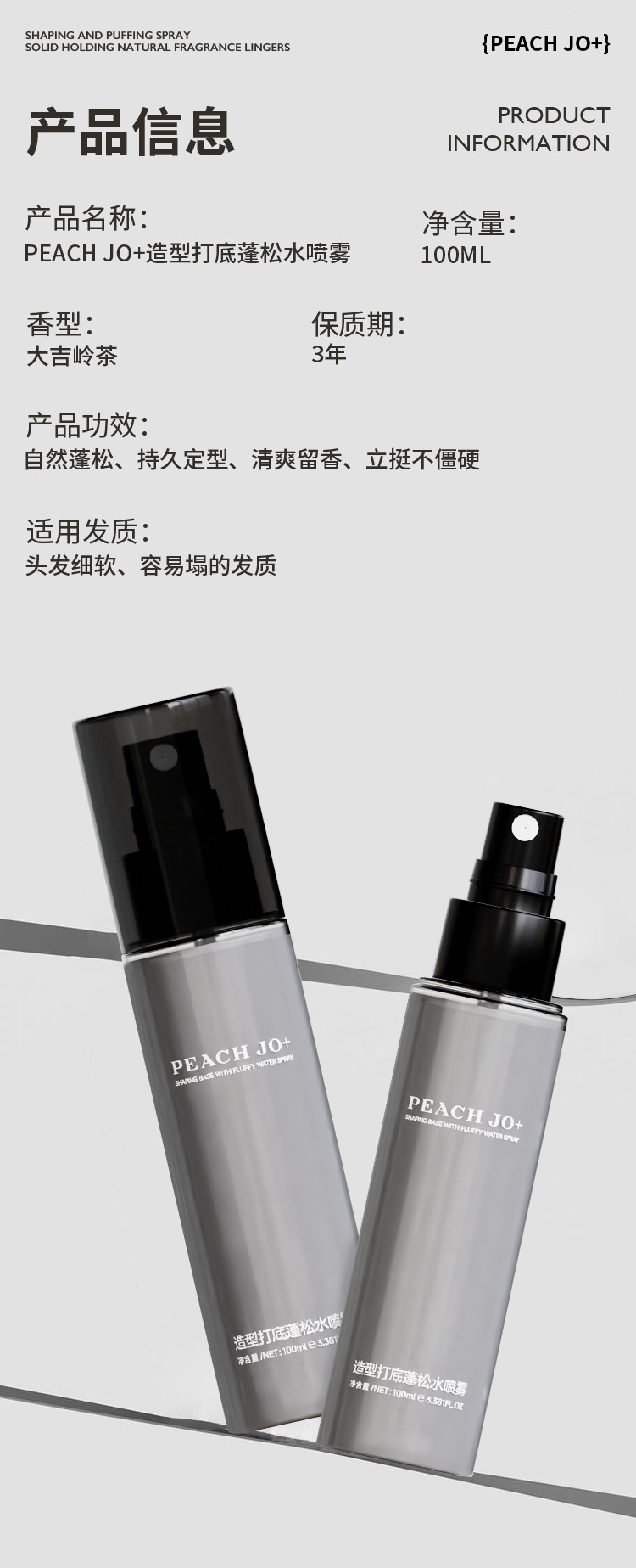 PEACH JO+造型打底蓬松水蓬松液喷雾男士免洗高颅顶清爽持久发胶