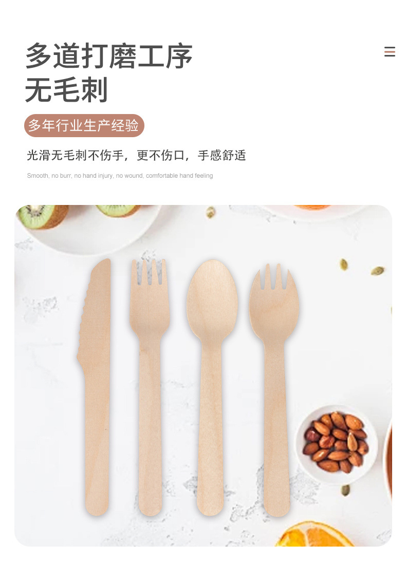 可降解一次性刀叉勺套装桦木出口西餐木质甜品勺餐具木叉木勺木刀