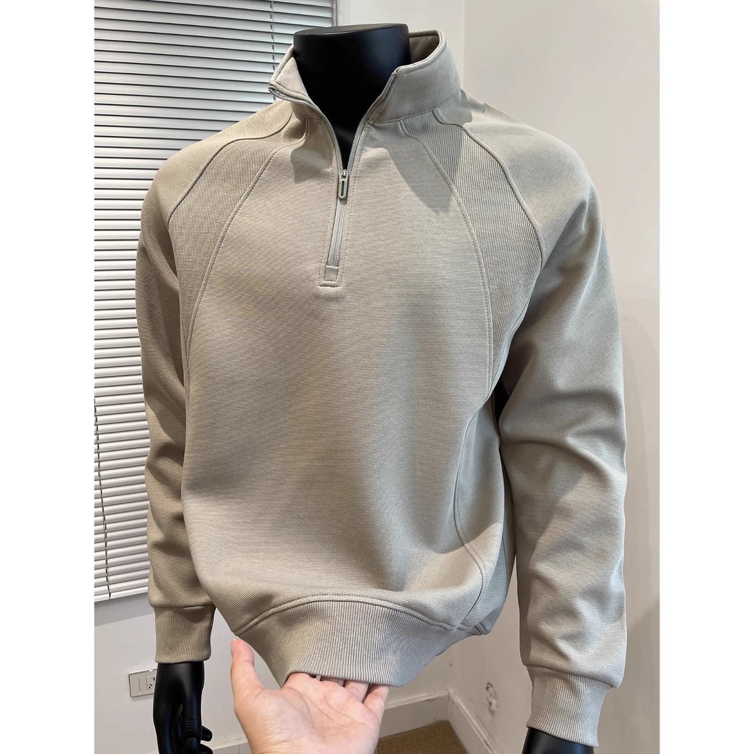 灰色螺纹拼接半拉链卫衣男秋季cleanfit美式复古重磅立领运动夹克