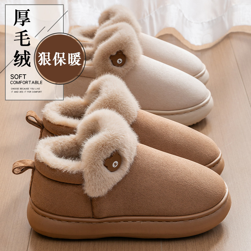毛绒全包棉拖鞋女秋冬季外穿防滑厚底室内雪地靴居家加绒棉鞋暖绒