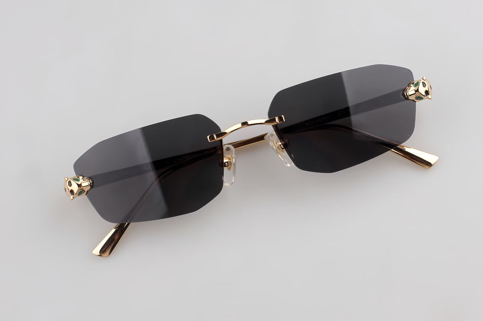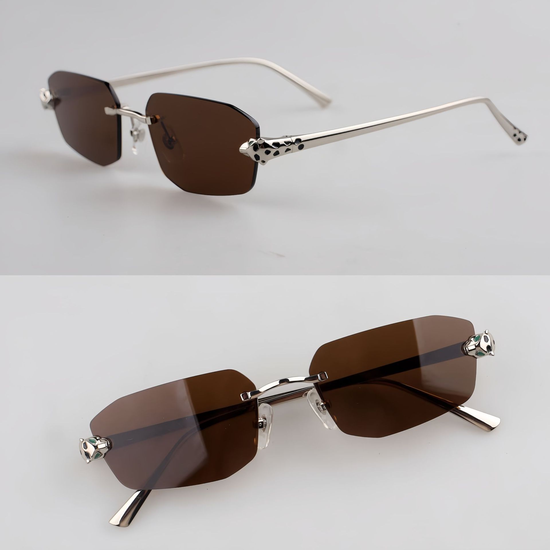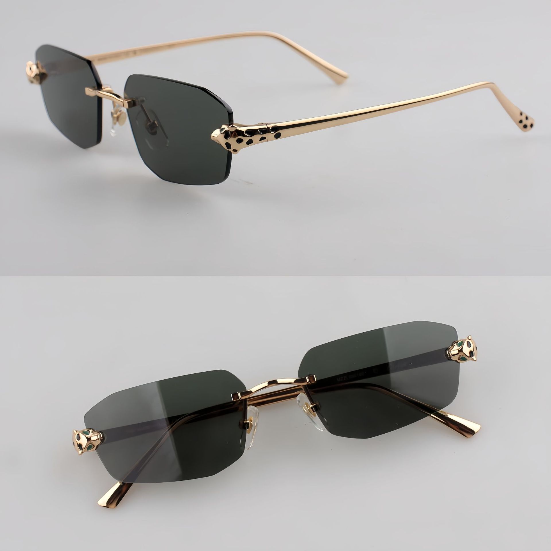 カルティエ風角型フレームレス近視用メガネ、男女兼用、成功者必携、光学平面メガネフレーム、軽奢スタイル
