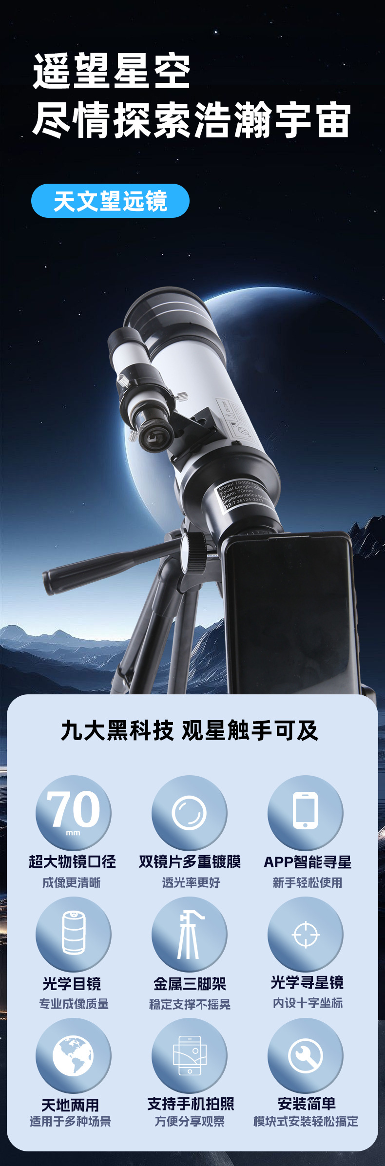 批发BS70400天文望远镜观星高倍大口径儿童户外望远镜广角